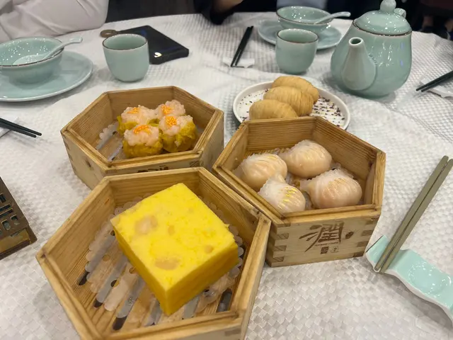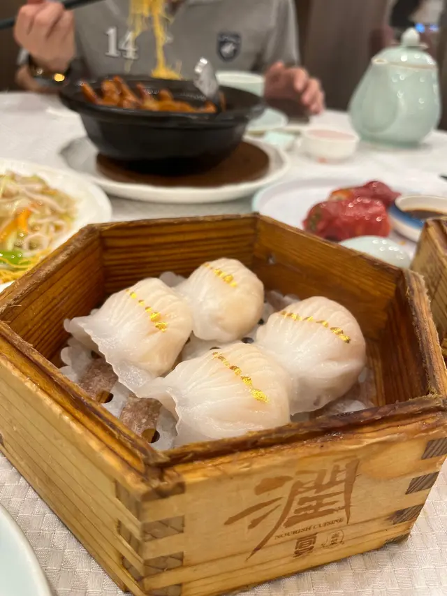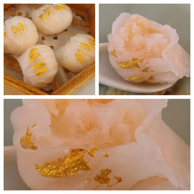今天中午唱歌班老師請飲茶,7個人點了10多個點心,開心暢談,點心精致,水滾茶靚,首先要讚👍服務,好快有人沖茶,保證夠熱,這是茶樓最基本的服務。第二點心款式多,新舊傳統點心都有,腸粉好滑,紅米腸新鮮,幾種口感,食得好過癮。雪山叉燒包又熱又軟,菠蘿包皮加叉燒餡,香甜軟糯,混合感覺。金箔蝦餃超大粒,貼上金箔,輝煌晶瑩,令到人的食慾大升,爽爽的蝦肉鮮香味美。還有流沙芝麻包,燒賣,叉燒腸,炸鮮奶,羅蔔絲酥餅,蝦滑魚肚,再來個芝士蝦仁燜伊麵,差點忘了饅魚燒餅,真是很特別的新式點心,難怪中午全院滿座,下次飲茶一定來這裡。😋😋查看更多