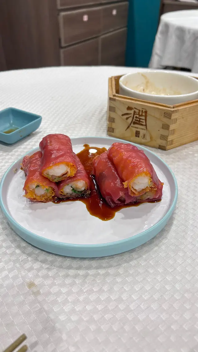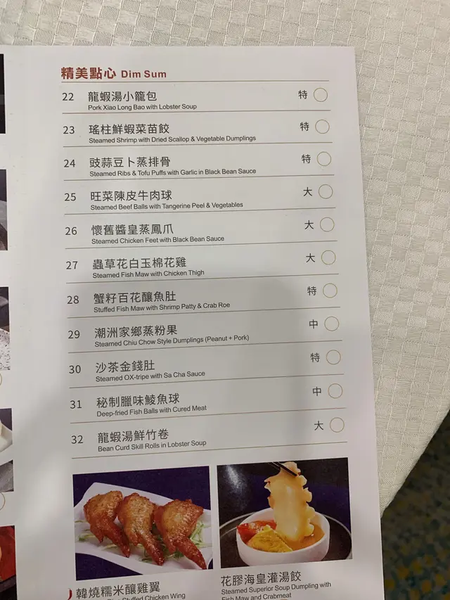 來這家酒樓是為了吃紅米腸😆星期五午飯時間一點左右,意外地完全不用等位,掃QR code落單,2個人叫了4款點心:蘿蔔絲酥餅、排骨陳村粉、紅米腸、龍蝦湯鮮竹卷(上菜順序)1)蘿蔔絲酥餅:因為是即叫即做,夠熱,味道不錯2)排骨陳村粉:所謂陳村粉其實係豬腸粉,香港真係好難食到真正嘅陳村粉,名不副實,不合格!3)紅米腸:新鮮炸出來,夠脆,但係有我最憎嘅芹菜,扣分😂4) 龍蝦湯鮮竹卷:外皮係炸過脆脆地,龍蝦湯偏咸,又有我最憎嘅芹菜,又扣分😂總括來說,點心的確係即叫即做,而且係逐樣上菜,咁樣可以確保食每樣點心時都熱辣辣,尚算不錯!查看更多