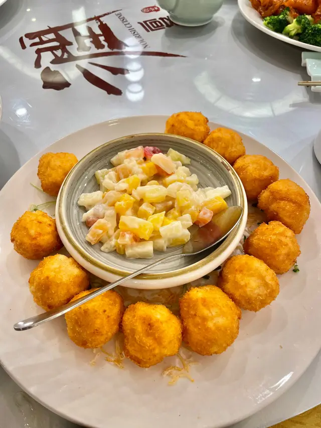 第一次來到這酒樓吃團年飯,感覺進食環境也不錯。這裏燈光明亮,座位舒適。今晚的菜式豐富,份量充足,食物份量頗大。年年順景全包宴~鴻運當頭乳豬全體乳豬皮燒得脆口,但稍嫌肥肉較多。~龍蝦湯羊肚菌焗虎蝦球份量很大,蝦球數量亦多,但味道較淡。~花開富貴醬皇翡翠炒花膠柳西蘭花爽口,花膠柳爽脆,味道微辣。~金盞沙律百花球百花球炸得金黃色,賣相不俗,彈牙爽口。~紅燒竹笙雞絲翅魚翅群邊位較多,但整體也不錯。~年年有餘清蒸沙巴海斑大大條魚,肉質不似細魚滑。~發財好市瑤柱脯新年必吃,瑤柱原粒上,配蠔市發菜和菜苗,好吃。~新春當紅脆皮炸子雞脆得恰到好處,皮脆肉嫩,味道不錯。~家肥屋潤臘味糯米飯糯米飯軟糯,整體味道豐富。~步步高陞棗皇糕千層棗皇糕有薑汁的味道。~陳皮紅豆沙湯圓芝麻湯圓味美,配紅豆沙吃也不錯。那個另加的酥炸生蠔🦪外皮酥脆,𧐢肉豐滿,好吃!薑蔥生𧐢也不錯呀!查看更多