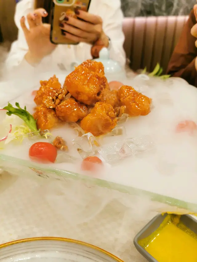 見新開就同朋友黎試下環境舒適,食物冇令人失望,味道屬於中上, 服務可以。冰鎮咕嚕肉👉🏻 外脆內暖, 咬落口感似豬頸肉 ,加入乾冰效果令人眼前一亮食神炒飯 👉🏻 真心好味好好味,表面舖上蟹子突出整條魚嘅形狀, 炒飯內裡有一粒粒嘅黑色米好煙韌。燒鵝 👉🏻 好香,個皮好脆。香芹炒花膠筒👉🏻 好食。菊花蝦丸 👉🏻好食而且造型好靚, 睇得出廚師的心思。 查看更多