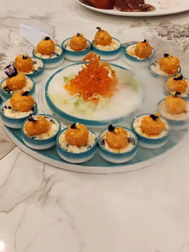 原來炮台山站呢間酒樓換咗手,今次膽粗粗跟住人嚟食晚飯,坦白講裝修服務一般,不過睇到餐單設計用心,感覺驚喜,而且食物質素和味道都算有水準,如果要挑剔糖水最遜色,但其實食完炒飯都已經超飽,無特別食碗紅豆沙,包房仲有卡拉 OK 總結全晚氣氛唔錯。精美前菜拼盤鹽燒鮑魚、冰燒三層肉、陳醋海蜇頭、泡椒脆魚皮主菜金箔白雪藏龍鮑汁金錢扣花膠黑松露堂煎大元貝姬松茸螺頭竹絲雞燉海參冰鎮咕嚕西班牙黑豚肉清蒸大海虎杉斑大閘蟹粉扒豆苗潤宴招牌食神炒飯精美甜品查看更多