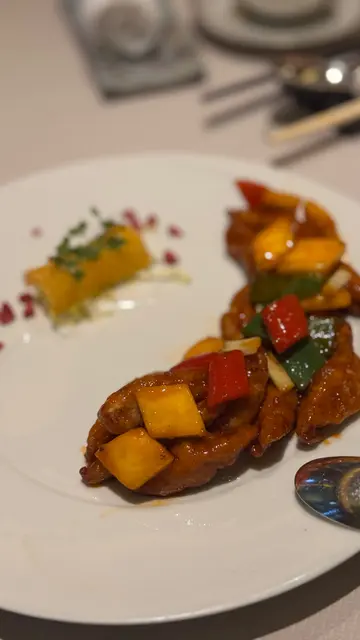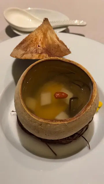 今晚与商业伙伴一同光临这间颇具盛名的中菜餐厅,早已听闻其菜色出色,果然不负盛名。餐厅为我们安排了一个安静隐蔽的corner位,私隐度极高,令整个用餐环境更为舒适。员工服务态度极佳,细心周到,令人宾至如归。我们点了招牌叉烧,叉烧肉质柔软似棉,蜜糖香气馥郁,无疑是我心目中叉烧质素前三甲。随后上桌的椰子鲍鱼汤,鲜甜汤汁锁在原个椰子里,鲍鱼鲜嫩弹牙,滋味浓郁令人难忘。咕噜肉的菠萝及青红椒切割得非常整齐,上碟造型优雅美观,咕噜肉味道恰到好处,酸甜适中,肉质软嫩令人回味无穷。盐焗鸡的外皮香脆,肉质鲜嫩多汁,盐味均匀,口感一流。甜品方面,我们选了开心果露,惊喜在于连开心果都铺成沙粒状,口感细腻而不过甜,入口香浓,非常讨喜。整体而言,整餐用膳体验十分满意,菜式质素优秀,环境舒适,服务一流,是一次非常值得推荐的中菜体验。…查看更多