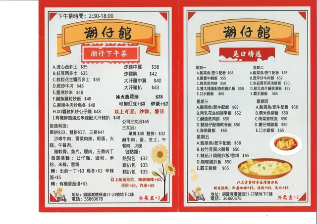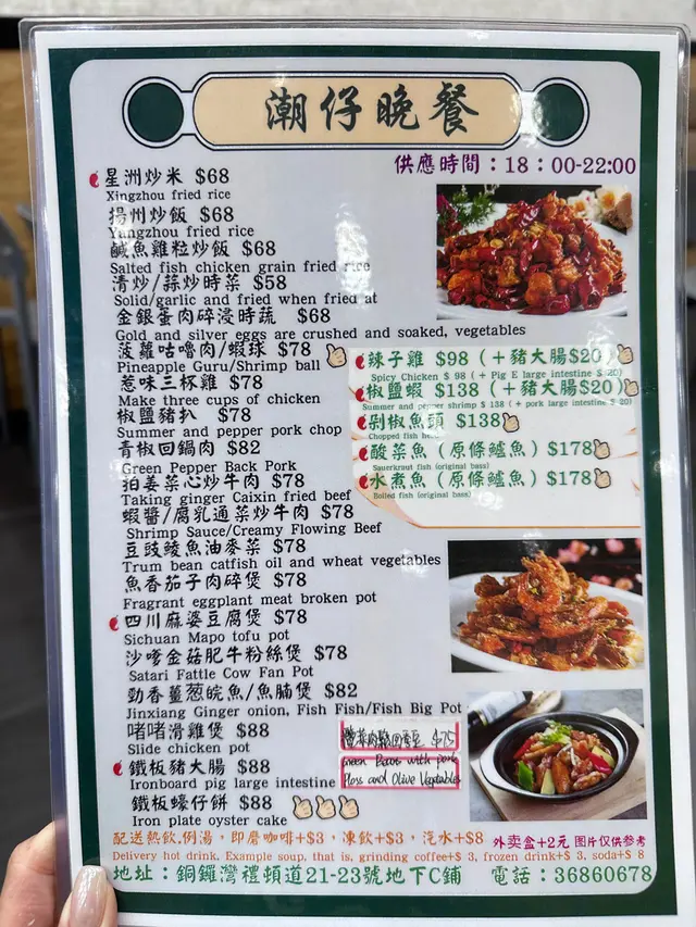 潮仔館 (铜锣湾) 网址: https://s.openrice.com/QrLS0LciB00 地址: 香港銅鑼灣禮頓道21-23號均峯商業大廈地下C號舖 电话: +852 36860678