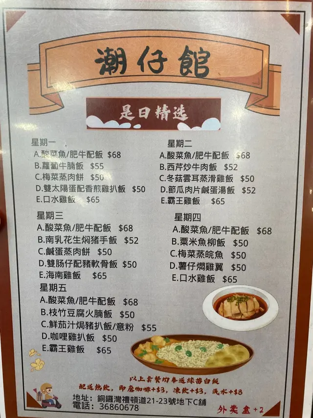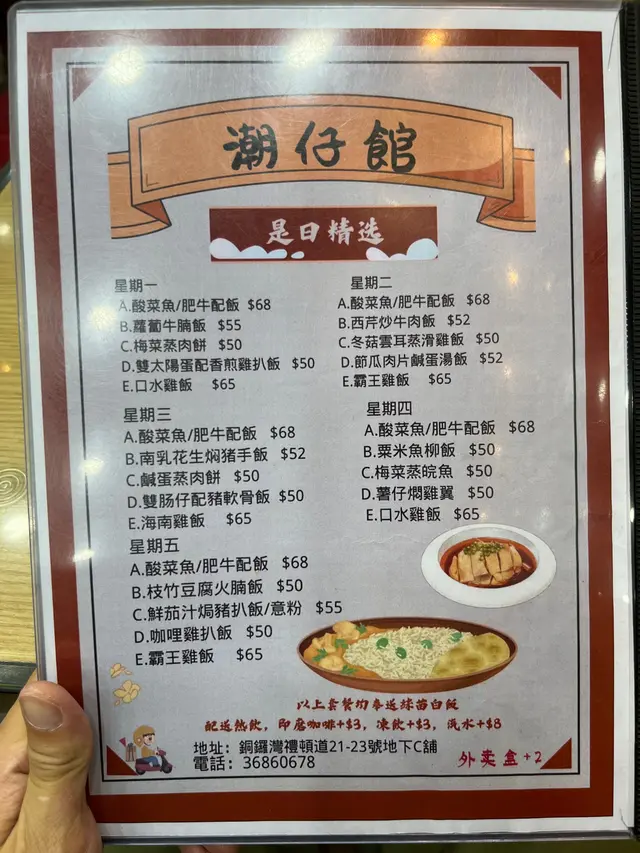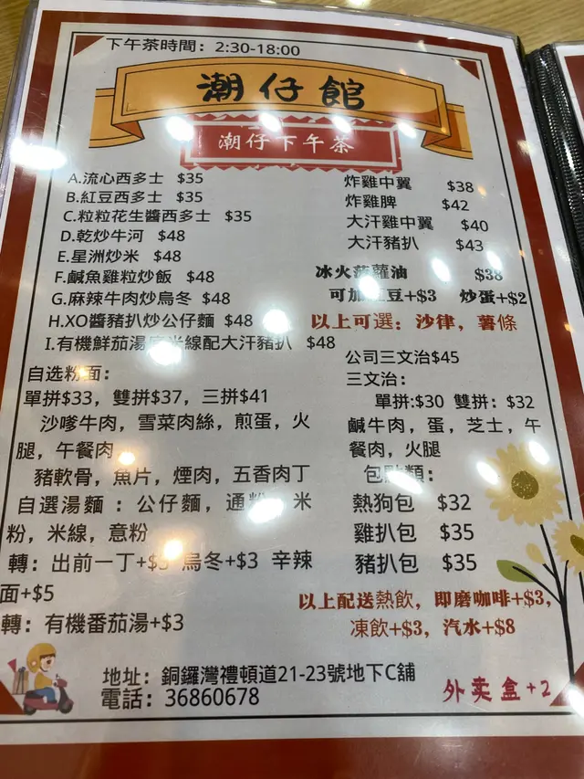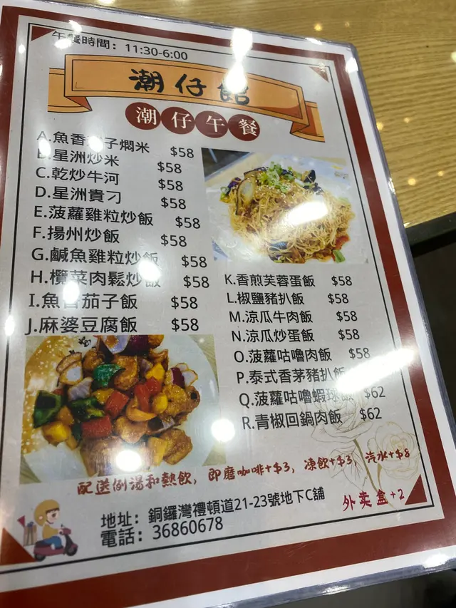 銅鑼灣大部份都是連鎖食店,沒有什麼新鮮感。當遇見獨立經營的小店都要支持一下,今日就見到【潮仔館】。沒有堂皇的裝潢,卻有一份街坊味道。特別是中午時段,附近的工人坐滿小店,非常熱鬧。雖然食店不大,但食物選擇比預期多。以為只是潮州食店,但竟然有乾炒牛河、咕嚕肉飯這些港式茶餐廳菜式。叫得【潮仔館】,當然叫潮州特色: 潮州蠔仔泡飯 ($46)。潮州蠔仔粥是潮州食店中必有菜式。這款粥就像廣東泡飯一樣,於湯中加入了白米飯,配上了蠔仔、唐芹、芫茜、肉碎…等配料。這款粥的靈魂就是用了大地魚去煮出的湯底,不過味道不太突出。另外,蠔仔多但不夠鮮。整體味道不過不失。…查看更多