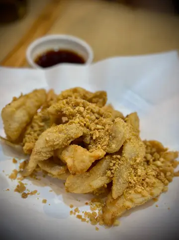 潮州打冷一向系宵夜好选择,油麻地呢间《潮味庄》就系其中一个热闹聚脚点,开到凌晨 2:30,近佐敦站都好方便。入面环境真系有d逼,几张枱拍埋一齐,但反而令到成间舖好有「街坊 feel」,坐低就听到隔离枱笑声,气氛好旺。店员态度好亲切,落单快手,价钱合理,啱晒同朋友食吓潮州风味啤一啤!😋 潮式冻鱼大眼鸡 ~ 鱼肉雪白,肉质结实,味道鲜甜冇腥味,冻鱼系打冷必食之选!😋 卤水鹅片 ~ 另一样潮州打冷必食嘅就系卤水,鹅片卤得入味,色泽深啡但唔会死咸。鹅肉带少少韧度,配埋卤水花生一齐食系几正。😋 韭菜猪红 ~ 猪红滑溜,入口即化,冇腥味。韭菜炒得香口,带少少爽脆。😋 鸭蛋蚝饼 ~ 蚝仔新鲜,唔算大粒但够鲜甜,煎到外脆内嫩,呢度系用鸭蛋煎出嚟个蛋香更浓。😋 椒盐九肚鱼 ~ 炸到外脆内软,椒盐味好突出,加上炸粉唔算厚,唔会太油腻。…查看更多