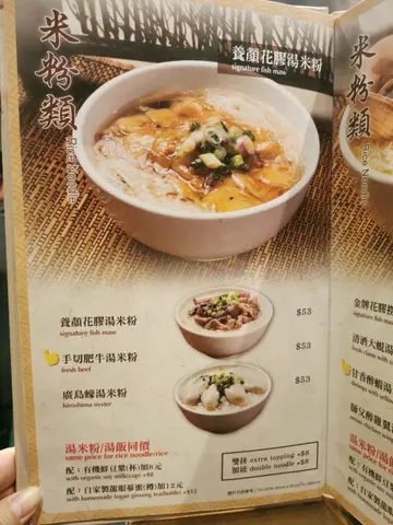 呢间太子小店 好想推介比大家佢既必叫花胶汤底 真系好正养颜厚实既花胶 有咬口 对于唔识点处理花胶既我 最岩黎呢度食另外 手切肥牛汤 都系必食!!!!果牛肉好好味 除左有牛味之外 佢唔会好难咬 好淋有少少似食紧616既牛肉火锅咁好好食佢用新竹米粉 较幼身 滑口 葱油广岛蚝好肥美🥰🥰 好香既蚝味 如果钟意食蚝既你 唔可以错过 佢葱油咁煮 唔会有太多调味 唔会遮盖左蚝本身有既鲜味 清酒煮蚬大概有8只蚬 但我食左4只 有3只都有沙 对呢方面有少少失望🥲 不过清酒味唔会过浓 唔会遮盖左蚬本身既鲜甜味 饮品方面个人都极推龙眼花旗参蜜好香好浓既花旗参味 为呢一餐做左一个细细既点缀🥰…查看更多