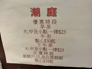 第一次去潮庭,等咗20分钟坐低。由落单到食物来到枱面要30分钟,每一笼每一碟咬落口都系冻嘅!第一次饮茶食啲咁难食嘅嘢!唔明白点解仲有咁多人去饮茶?绝对冇下一次帮衬,失望到极点,仲要价钱唔平。仲嬲。。…查看更多