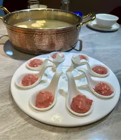前排同朋友去咗九龙湾呢间新开嘅潮式火锅店,Order 咗佢哋嘅雪花牛肉同全牛宴,感觉整体好满足,牛肉部位多到眼花,蔬菜选择都几新鲜,份量足够,好抵食🔥招牌牛骨清汤锅用金标小黄牛熬制,汤色清澈透亮,入口有阵淡淡牛香同鲜甜,喝落滑顺唔腻。牛骨精华渗入汤内,配埋牛肉食真系正👍🏻雪花牛肉见住餐厅即切就紧系新鲜喇~ 肉质粉嫩肥瘦分布平均,涮落汤底入口即溶,牛味爆浓,尤其系雪花位嘅油花融化喺口内,层次分明😍全牛宴呢个简直系重头戏!劲多部位~ 包括三花趾、五花趾、匙皮、牛舌、雪花、胸口𦛨、匙柄、吊龙同肥胼,每款牛肉部位都系又见住店员新鲜即切~ 三花趾嫩滑多汁,入口鲜甜无渣;五花趾肥瘦适中,涮熟带点脆口;匙皮脆脆地有嚼劲,匙柄就弹牙有筋位,牛舌厚实软熟,吊龙瘦身牛味重,胸口𦛨同肥胼加咗油花,食落juicy~ 感觉好似食晒一只牛嘅精华,值回票价🥢蔬菜方面,店内有多种新鲜选择,放入汤底入口爽口解腻,配牛肉食好夹…查看更多