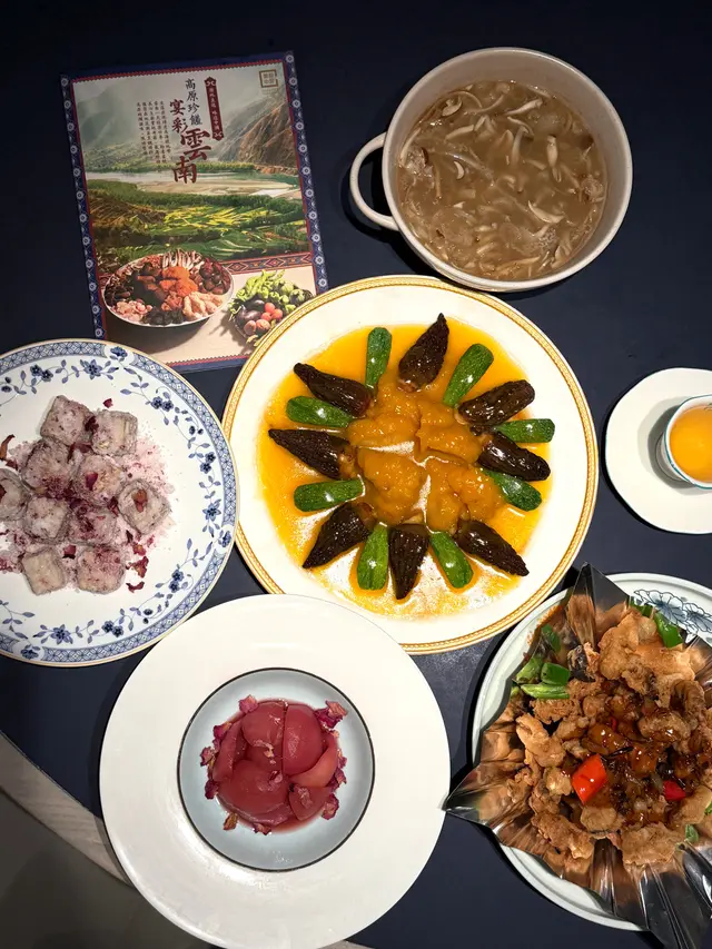 最近同屋企人食呀爸生日飯,喺銅鑼灣呢間食咗新出嘅「高原珍饈 宴彩雲南」潮菜系列,真係有種一秒去咗雲南嘅感覺🌄,個人覺得呢個雲南系列 誠意十足👏。一坐低前菜就有「玫瑰洛神花百香果」🍹百香果肉同洛神花,味道酸酸甜甜,開胃到不得了😚!主菜「火焰燒汁雲南鮮菌鱸魚」🐟用咗雲南鹿茸菌同姬松茸菌,鹿茸菌爽脆又鮮美,聽講仲對身體唔錯💪。將新鮮菌子酥炸,再配埋炸鱸魚最後淋上自家製雲南風味醬汁,食落外脆內嫩,真係好味到停唔到口🤤。「新鮮姬松茸竹笙花膠羹」🍲,用咗姬松茸、諾鄧火腿、竹笙同花膠,啖啖都係珍稀食材。諾鄧火腿用咗千年鹽井嘅鹽醃製,竹笙滑溜,花膠膠質感十足,飲完成個人都覺得滋補咗😌。「金耳伴蝦膠釀羊肚菌」🍄,金耳有「耳中貴族」之稱,外形靚到好似金色花朵🌼。金耳放入南瓜金湯,湯汁掛滿每一片,清甜又滋潤。羊肚菌釀咗蝦膠,一啖爽嫩,一啖軟糯,層次感非常豐富😮。甜品「玫瑰花醬反沙芋頭」🌹,係我最期待嘅,個人好中意食芋頭。呢款芋頭炒到乾身,外層包住砂糖,咬落去有淡淡玫瑰花香,清甜又唔膩🥰。真係好推介。 成餐飯食到好滿足,每道菜都見到主廚嘅心思同手藝👨🍳。雲南食材新鮮又有特色,配合潮菜嘅烹調方法,真係食到唔同層次嘅味道👍。同埋餐廳環境都唔錯,仲有包房可以同屋企人一齊喺度食飯,仲有啲私人空間添 。…查看更多