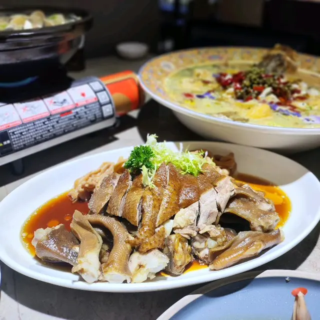 花膠魚翅燉老雞&酒香鮑魚&黑松露金沙蝦多士&滷水牛腱&生炸新鮮乳鴿&黃金蝦球&蝦醬牛肉炒通菜