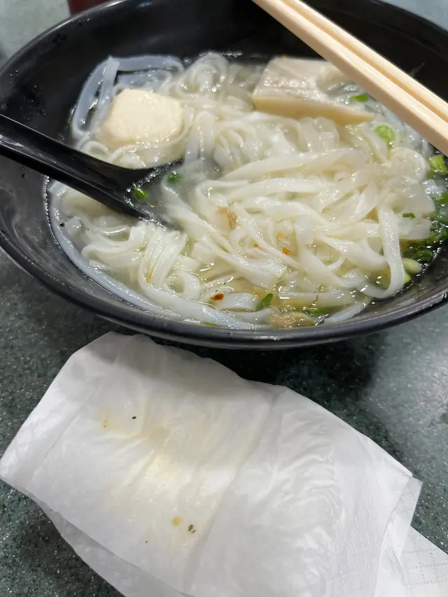 嚟附近做嘢,是但揀咗間餐廳嚟食,心諗魚蛋粉差極有限。碗河粉比出面餐廳大碗。正想拎筷子開餐時,發現所有筷子都黐立立⋯ 立到用乾紙巾抹都抹唔到,會直接整爛張紙巾⋯⋯我見識少,真係未見過/摸過咁黐立立嘅餐具。見到已經想嘔。而碗湯河可以話冇味,魚蛋偏林同爛,唔爽口。好彩有蔥可以送粉嚟食。唔知係咪我唔識貨,食晏時間竟然都keep住有客!?仲會有好評!?咁嘅質素、味道、衛生情況$10我都唔想畀,何況一碗要$40⋯⋯ 查看更多