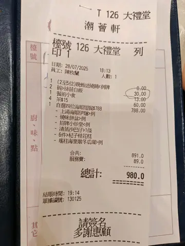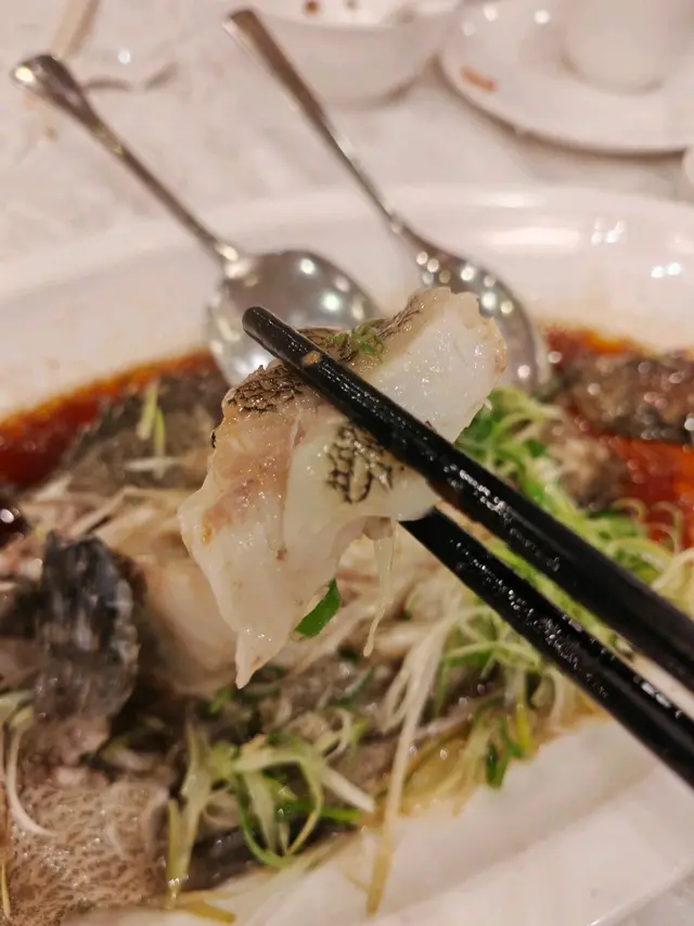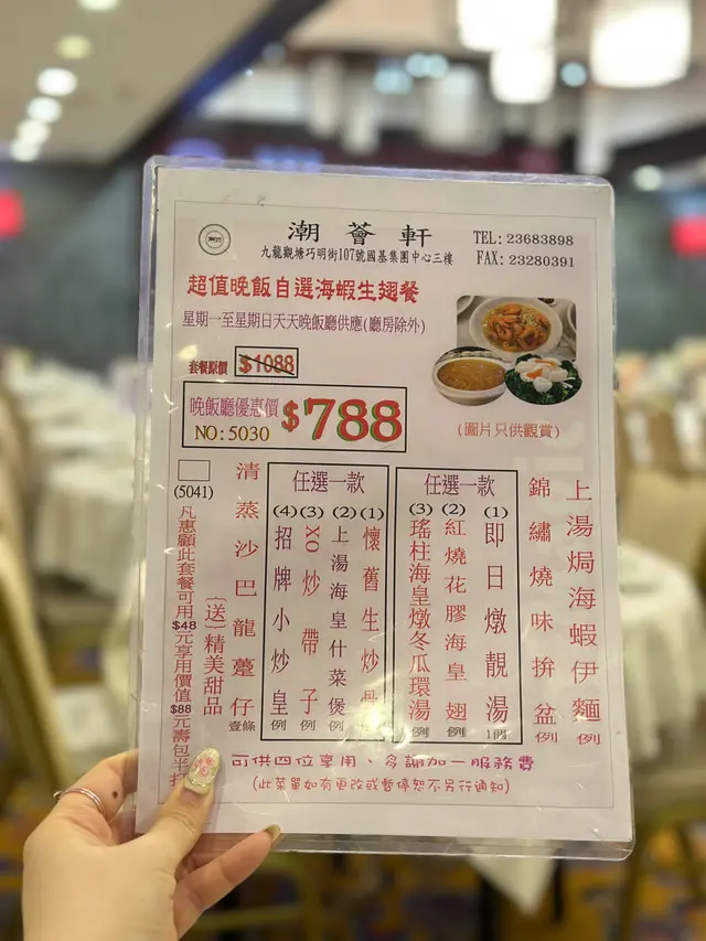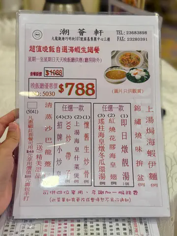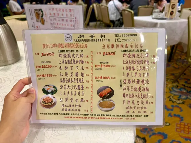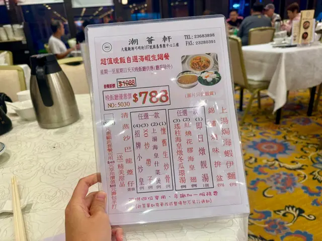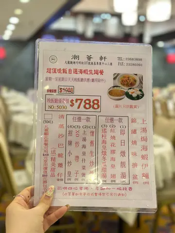 同朋友去观塘揾食,发现呢间「潮荟轩」真系正!观塘站行4分钟就到,方便到爆。入到去环境光猛阔落,枱与枱之间空间充足,坐得好舒服。我哋四个叫咗个「海虾翅餐」($788),人均$237食到超满足,仲有惊喜甜品送! 必食重点明炉烧鹅(免费送!)而家佢哋做紧优惠,只要一坐低就会送烧鹅,我哋四个人送咗例牌烧鹅。唔好以为送嘅嘢就求其,相反啲皮脆到「咔嚓」声,肉质嫩滑又多汁。最正系个皮同肉之间嘅油脂,入口即溶,配酸梅酱简直绝配! 烧味三拼(水准高)- 脆皮烧腩仔:皮脆过薯片,三层肉肥瘦均匀,个皮可以脆足成餐饭,真系有啲料到。- 蜜汁叉烧:用脢头肉,边位㶶㶶哋,蜜汁香甜唔会过火,连平时唔钟意食叉烧嘅,我都觉得好好味。- 凉拌海蜇:厚切爽脆,麻油香好突出。清蒸沙巴龙趸(鲜味爆灯!)条鱼蒸得啱啱好,鱼肉一夹就离骨,嫩滑到不得了!鱼皮仲有层啫喱状胶质,豉油调味恰到好处,葱丝铺面带出鲜味。最惊喜系鱼肉完全冇腥味,新鲜度满分! 上汤海虾伊面(原来伊面才是主角!)海虾大大只,虾肉爽口弹牙。伊面煮得刚好,索晒上汤嘅精华,汤底清甜唔会太重味精。 红烧花胶海皇翅(足料到吓亲)汤羹入面真系睇到一疏疏鱼翅,仲有花胶同埋粒粒虾仁,饮完成个嘴都黏黏哋,胶质丰富到爆! XO酱炒带子(镬气十足) 带子煎到外脆内嫩,size有成银仔咁大!西芹爽脆清甜,完美平衡XO酱嘅浓味。 甜品时间- 杞子桂花糕(跟餐):清甜唔腻,桂花香好自然,仲有杞子增加口感 - 额外送糖水(二选一): - 陈皮绿豆沙:煲到起沙,陈皮香若隐若现 - 芝麻糊:香浓滑溜,芝麻味好出 今餐真系食得好满足,由头盘烧鹅到主菜蒸鱼,再到甜品都咁出色!朋友已经约定下个月要再嚟encore~ …查看更多