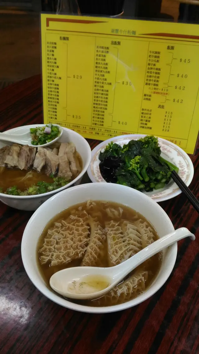 午餐黎過依度食,閒日人都算幾多,有少少難有位架!要食早啲黎搵個靚位~~樓面員工好似得1個姐姐負責晒,上菜速度唔似平時啲湯粉麵店咁快,要預多少少時間黎食。。叫左碗雲吞麵,其實個味係唔錯,夠味,但太濃,個雲吞都有啲過份鹹,個湯都係好夠味,好彩都唔吸水,如果唔係會好鹹。另外叫左碗牛肚河,連個牛肚都勁鹹😂😂夠味! 中意食重味嘅人必去!$34一碗我覺得算唔錯!牛肚其實都好味~~~野飲就熱飲都要加5蚊,凍好似加8蚊!…查看更多