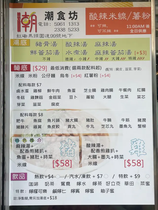 潮食坊 (红磡) 网址: https://s.openrice.com/QrLS01tWA00 地址: 香港紅磡馬頭圍道99號地舖 电话: +852 59611313