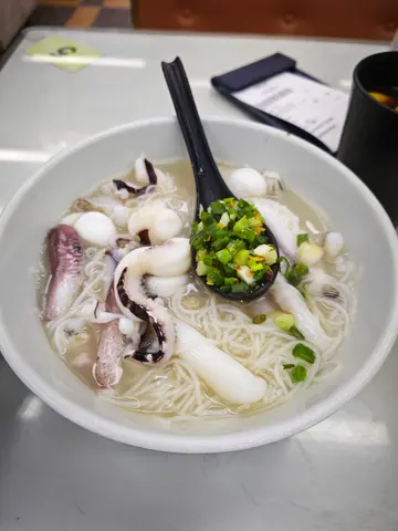 今日过来屯门, 经过见到好多人吃, 差唔多坐唔晒, 于是坐入去试一下, 望下餐牌, 我个人不食🐮牛, 拣左墨鱼头🪼汤米粉, 加左碟通菜, 再加四元要左杯热柠茶🍋 隔一阵来热柠茶🍋茶就真系好够热, 不过d红茶太浓亦到劲苦涩😅, 再之后来墨鱼头🪼汤米粉, 都几大碗😅, 卖相都几靓仔, 饮啖汤先, 都几清几甜, 但总是觉得有阵牛味😀, 米粉份量都多, 质素都OK, 唔系碎湿湿, 墨鱼头🪼都比得几多, 食落都系新鲜💕😋, 但有d位置食落比较硬, 都食唔到😂, 之后再来通菜, 份量都几多, 但d腐乳酱咸得有d过份😅, 所以只系点好少, 都无再点了, 味道叫合格, 服务都叫可以, 不过见店员收野比较急, 一食晒就收🤣🤣…查看更多