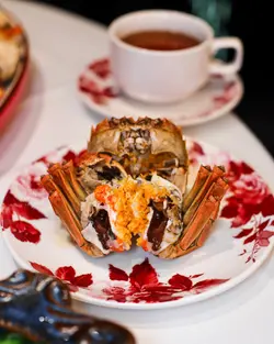 秋风起 系时候食大闸蟹啦🦀位于The ONE嘅潮.囍荟推出抵食大闸蟹套餐只只蟹都爆晒膏❤️蟹迷一定要试下🥰✨ 大闸蟹套餐 ($398/位)❀ 宫廷萝卜|拍蒜青瓜|沙姜猪手 🥢3款前菜够晒开胃~萝卜青瓜酸甜爽脆沙姜猪手啖啖骨胶原👅❀ 清蒸大闸蟹 (1公2母) 🦀当晚每只都有足足四两半😍公蟹及母蟹都爆晒膏劲吸引~拆开系饱满浓郁嘅蟹黄蟹膏口感丰腴甘香 非常鲜甜❤️❀ 滋补炖汤 🥣汤头以螺头、排骨及虫草花等熬制鲜香浓郁 好滋润❀ 油盐水石斑鱼 🐟有两大块石斑鱼鱼肉外皮烟韧 肉质厚实鲜嫩配埋鱼汤及粉丝 鲜味十足😚❀ 大澳海山骨 🐷炸到皮脆肉嫩 充满虾酱咸香风味 够晒惹味🥰❀ 鲜茄菌皇浸菜苗 🥬菜苗爽口清新 平衡味蕾有助解腻❀ 香芋糯米饭 🍚糯米饭炒得好香烟韧软糯 加入腊味及芋头粒满满饱足感👍🏻❀ 圆肉姜茶 🫚食蟹一定要配姜茶‼️姜味浓厚 暖胃又驱寒✨❀ 花雕酒 (+$98/瓶) 🍾…查看更多