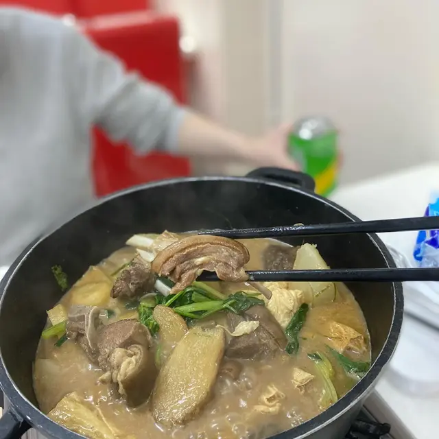 今晚終於等到期待已久嘅冷峰‼️喺食羊腩煲嘅吉日呀❣️聽朋友講呢間平靚正🤭所以試下❣️最緊要係任飲任食兩個鐘🤩人均200有找‼️真正嘅窮人恩物🤤門面用咗白色紅色🤨比較簡單🙃如果唔係朋友介紹都未必留意到‼️不過入邊嘅衛生都做得幾好👍🏻地下唔會油笠笠😬入正題先❣️佢有雞煲❕鯇魚煲❕羊腩煲❕藥膳雞煲等❣️我就梗係食羊腩煲啦因為冬天來了😉成煲都係羊腩呀‼️仲有大量芹菜➕芫荽➕蔥➕蘿蔔➕冬菇➕馬蹄➕腐竹‼️羊腩炆得啱啱好非常之嫰滑😬啲皮都好有彈性🤣仲好有羊味🤭正‼️醬料區有腐乳任裝🤤但我怕太咸所以就咁食😄對於我嚟講都已經非常之夠味‼️連啲薑都炆得好入味🤣食完羊腩就可以加湯繼續打邊爐🍲門口有一個邊爐料➕醬料自助區🤪醬料嗰邊都係辣椒🌶️豉油➕芫荽➕炸蒜等😬自己鍾意食咩就自己溝🤪至於邊爐料都係比較常見嘅菜➕麵➕丸可以任拎🙃其中比較少見嘅就係雞腎➕魚頭‼️不過我胃口細咗🤣就咁食羊腩煲都幾飽🤭所以淨係食咗啲菜➕烏冬➕肥牛🤭要求唔高嘅我覺得Ok‼️至於飲品都係可樂➕芒果汁🥭馬蹄爽➕獅威等…不過我哋揸車唔可以飲酒所以都淨係飲咗啲汽水🥤值得一讚就喺啲姐姐啲服務態度都幾好👍🏻查看更多