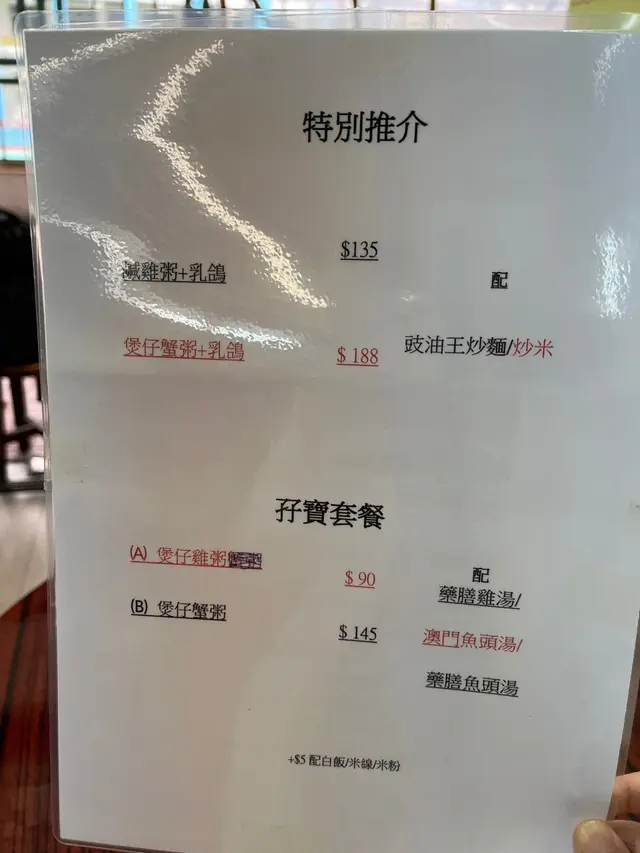 呢間係荃灣嘅小店出品質素🤩超水準而且CP值💰十分高!特別係我哋呢次🤤食嘅孖寶套餐B:🍲煲仔🦀蟹粥拼🌿藥膳🐓雞湯米線🍜只係$145,真係好味😋又抵食!🍲煲仔🦀蟹粥上枱嘅時候仲滾緊🤩,十分之香🤤。入面有成大隻水蟹🦀,所以成煲粥勁🥰鮮甜。啲粥🥣好綿滑,隻水蟹🦀都幾多膏🤤,撈勻啲粥一齊食勁甘香好味😋!藥膳🐓雞湯配米線🍜份量十足🤩,一上枱就散發出濃烈嘅藥材香味🤤。佢入面有好多藥材🥰,勁足料👍,係我食過數一數二濃藥材味嘅藥膳🐓雞湯🤤。個湯質感十分之☺️濃郁,仲有少少🤏黏口,🐔雞肉嫩滑米線🍜Q彈,水準之作😋!餐廳🥢推介我哋加隻乳鴿🐦,又幾有驚喜🤩。乳鴿🐦好香,個皮勁😍鬆化,味道咸香十足🤤。肉質好鮮嫩多汁🤤,質素好過好多大酒樓嘅出品,絕對值得一試😋,佢仲跟咗少少🤏香辣醃菜脯做伴菜,配粥食啱晒👍查看更多