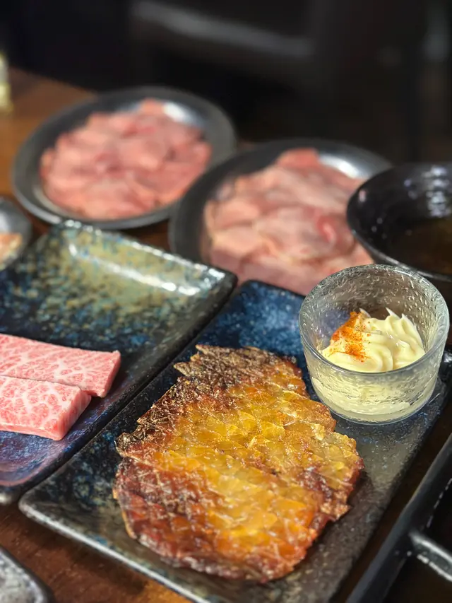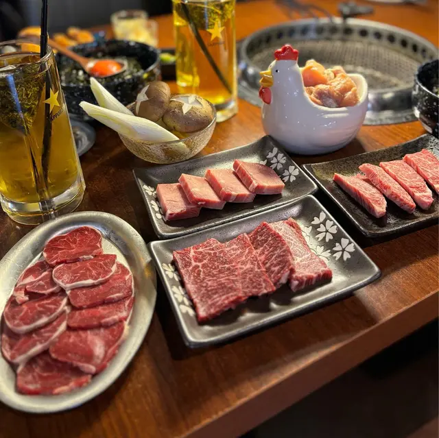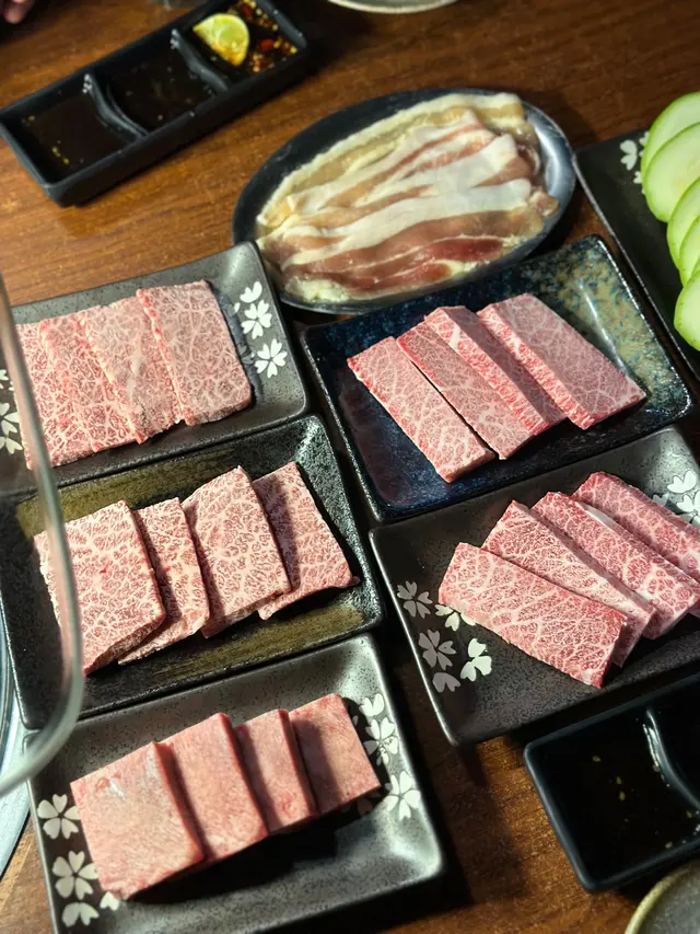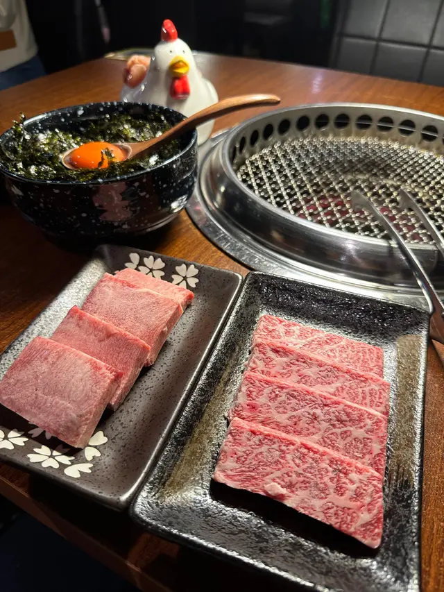 激安燒肉工房 X 大眾燒肉酒場 📍:筲箕灣新成街8號新成中心地下F號舖🚗:筲箕灣地鐵B3出口 步行11分鐘📞:+852 9886-7782💲:~HKD460/head for dinnerFood quality✔️:手切和牛五花(鹿兒島)、手切和牛三角腩(鹿兒島)、柚子漬雞肉山、和牛沙巴當壽喜燒、紫菜月見飯、Highball、芝士年糕、Sapporo生啤👌🏼:厚切牛舌芯、封門柳(美國牛)、日式味噌黑豚五花、和牛沙巴當、熱柚子蜜、青檸菠蘿梳打、特上目光魚、翠肉瓜、南瓜、菠蘿總結:😋一間肉幾高質嘅日式燒肉居酒屋🏮環境幽暗幾有氣氛 值得大家一試😋CP值唔算高但肉都對得住價錢 試咗都幾多款下 手切和牛五花同三角腩雪花都非常靚仔 厚度都適宜🥰😋柚子漬雞肉山就一上枱就聞到陣柚子味 燒完反而嗰味道冇咁出 但比一般雞肉多咗陣清新味😋和牛沙巴當壽喜燒會有員工係你面前用火槍炙燒 配上蛋汁撈埋飯食都幾惹味🤤😋紫菜月見飯其實就係雞蛋撈紫菜飯 簡單但美味 芝士年糕就本身好食加埋識燒就更加正😋燒肉店就好適🈴飲酒 Sapporo生啤仲要買一送一抵飲 Highball就永遠係食燒肉嘅最佳配搭🤔厚切牛舌芯同封門柳唔錯嘅 日式味噌黑豚五花同和牛沙巴當就係性價比之選 🤔特上目光魚就係口痕之選 翠肉瓜 南瓜同菠蘿🍍就係蔬菜之選🤔熱柚子蜜同青檸菠蘿梳打就正常🤔整體抽風做得幾好 食完都唔會好太陣味🫡😨間舖真係好遠 特登過嚟要預時間行過嚟…查看更多