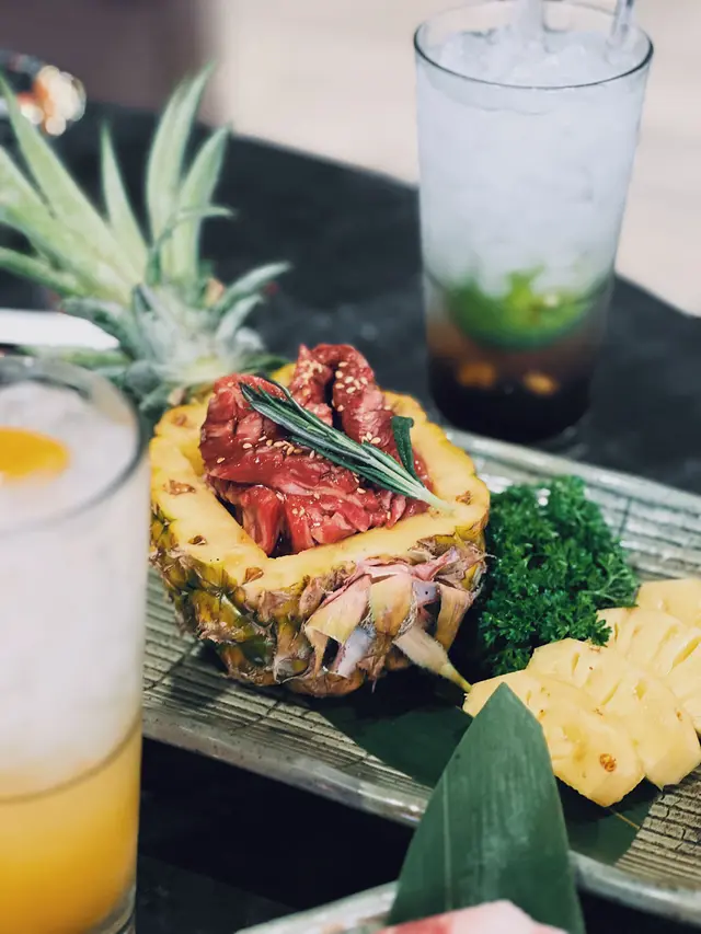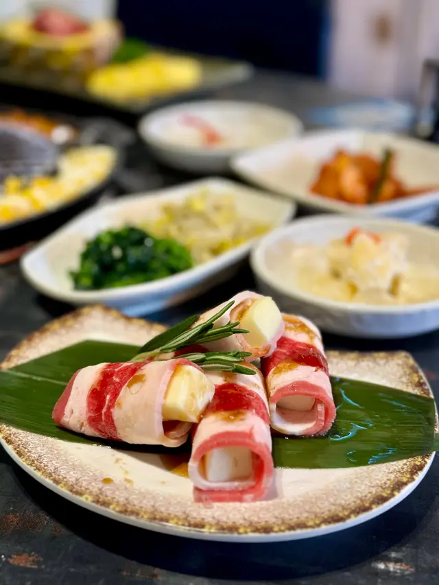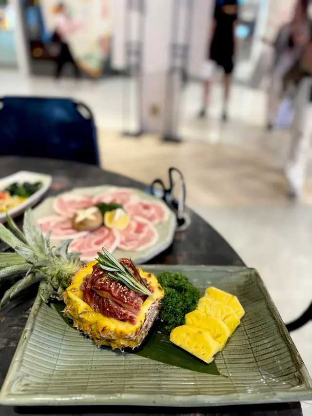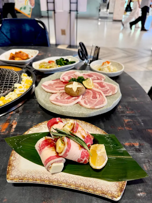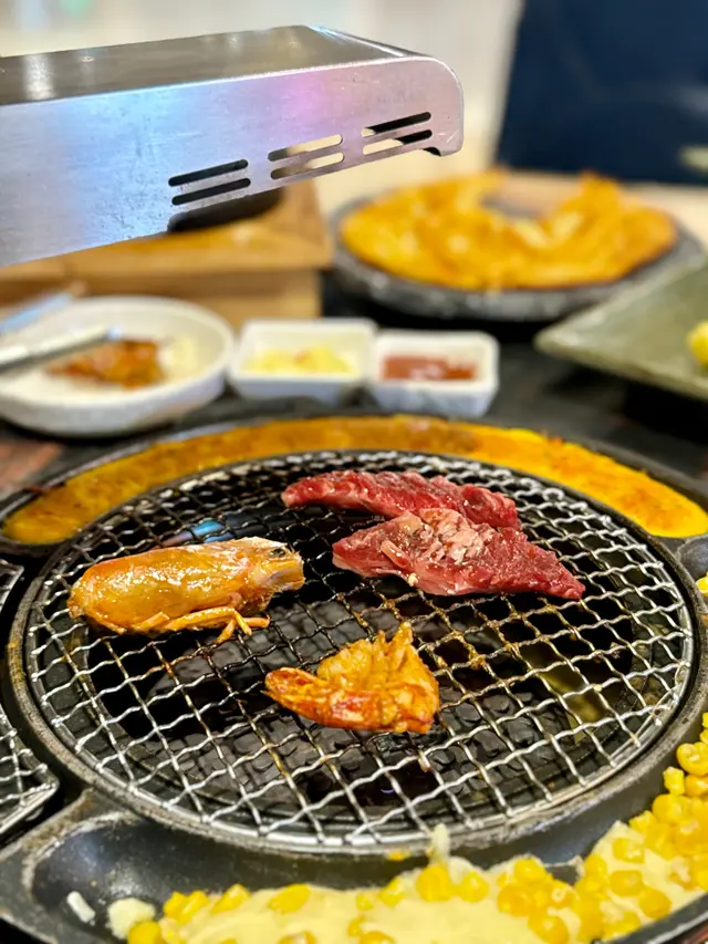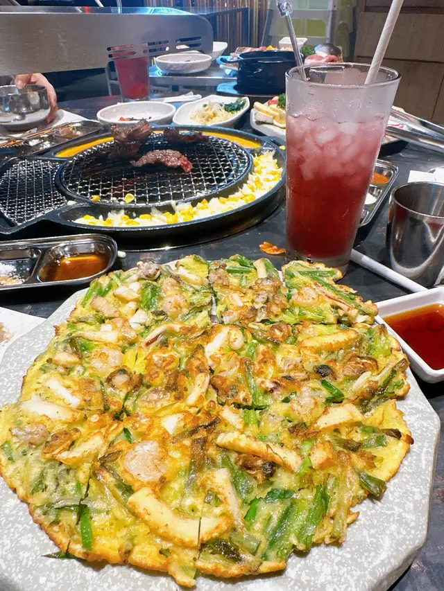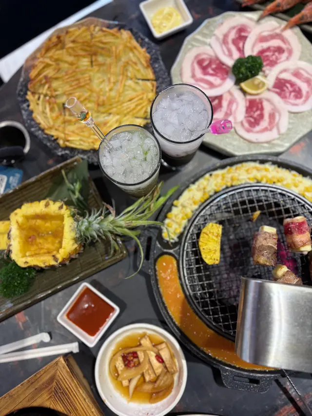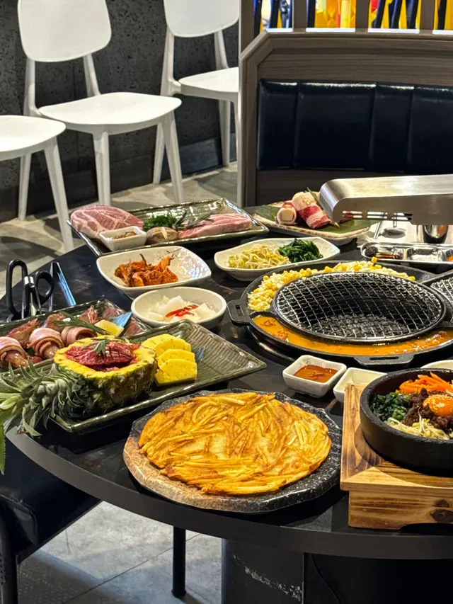 最近因為好耐未食過燒肉,又聽講濟州燒肉食堂有新產品推出,於是同朋友一齊黎試下。一如既往,前菜有五款,包括泡菜、薯仔沙律、醃芽菜等等,雖然前菜要加錢先可以refill,但爐邊蛋同粟米芝士就無限任食,已經好吸引!.第一款係菠蘿和牛五花肉 ($188),呢款真係好有創意,半隻菠蘿中間放滿和牛五花肉,肉味濃郁,旁邊仲有4塊菠蘿,可以當拌碟用,又可以放落爐燒,燒完菠蘿帶甜味同肉香一齊食,口感好特別。.跟住係牛五花芝士燒 ($98),呢款真係好驚喜!牛五花包住一磚目測有5cm厚既芝士,燒熟後牛肉吸晒芝士既鹹香,食落口滿滿芝士味,濃郁得黎又吾會過膩,芝士控一定中意。.而煙肉大蝦 ($115),呢款用煙肉包裹住珍寶大蝦,蝦肉新鮮又厚實,燒完煙肉香同蝦既鮮甜一齊爆發,咬落去好滿足,份量都幾足。.接住有西班牙熟成豬扒 ($258),呢款豬扒厚切到不得了,燒完外層微脆,內裏仲keep到嫩滑,肉汁鎖得好正,食完真係回味無窮,岩晒中意豬扒既朋友。.另外點左韓式馬鈴薯煎餅 ($128),表面鋪滿馬鈴薯絲,煎到薄脆,馬鈴薯香好濃,單食已經好正,仲可以沾埋沙律醬,口感多左一層變化,幾好味。.主食方面試左石頭鍋飯 ($98),呢個石鍋飯用料好豐富,有芽菜、紫菜、紅蘿蔔絲、香菇片、菠菜、牛肉碎同生蛋黃,熱辣辣上枱,加入韓式辣醬一齊拌勻,香氣爆棚,仲食到好多鍋巴,脆口又香,超正!.飲品方面點左柑橘梳打,青檸梳打 ($32),兩款都好清新,柑橘帶少少甜,青檸就酸酸地好醒神,岩晒解燒肉既油膩,飲完成個人都refresh哂…查看更多