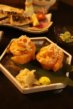 🇭🇰 Jordan 佐敦|Bin Song Ting Japanese Restaurant 滨松町日本料理Standing for over 2 and a half decades, this place is what we call reliable, a very important criteria when we are choosing a restaurant for eating sashimi! 🍣 With fresh ingredients flying in daily, as well as the owners putting their mind and hand into the restaurant, it is definitely worth checking it out! 👀 Here is our honest review: •𝐇𝐨𝐤𝐤𝐚𝐢𝐝𝐨 𝐒𝐜𝐚𝐥𝐥𝐨𝐩 𝐒𝐚𝐬𝐡𝐢𝐦𝐢 北海道帆立贝刺身This fresh dish is what you all should try! This is one of their signature sashimi dishes and I just love how fresh their scallops taste! 😋•𝐄𝐠𝐠 𝐚𝐧𝐝 𝐅𝐮𝐣𝐢 博多黄金屋This is a very creative dish with crispy tofu wrapping the egg inside, creating a bomb for your tongue! 👅 Make sure to dip their crab roe sauce! •𝐒𝐩𝐚𝐧𝐢𝐬𝐡 𝐀𝐢𝐫-𝐃𝐫𝐢𝐞𝐝 𝐁𝐞𝐞𝐟 𝐂𝐡𝐞𝐞𝐬𝐞 𝐰𝐢𝐭𝐡 𝐂𝐫𝐢𝐬𝐩𝐲 𝐁𝐢𝐬𝐜𝐮𝐢𝐭 西班牙风干牛肉芝士脆脆This is the Japanese version of ham and cheese 🧀 but instead of a cracker at the bottom, it is replaced by a crispy thin chip that by itself is flavourful! •𝐌𝐚𝐭𝐬𝐮𝐦𝐚𝐜𝐡𝐢 𝐋𝐨𝐯𝐞 𝐅𝐥𝐨𝐰𝐞𝐫 𝐒𝐮𝐬𝐡𝐢 松町恋之花寿司This cute flower is made with salmon 🍣 and some fish roe on top! What makes it special is the Japanese salad on top that adds to the refreshing flavour! •𝐌𝐨𝐮𝐧𝐭 𝐅𝐮𝐣𝐢 𝐅𝐥𝐚𝐦𝐞 𝐆𝐫𝐢𝐥𝐥𝐞𝐝 𝐒𝐜𝐚𝐥𝐥𝐨𝐩𝐬 富士山火焰带子烧They light the fire right in front of you and you can see the cheese 🫕 melt in real time! The grill flavour combined with the scallops and cheeses that gives you a mouthful of fufillment! •𝐊𝐢𝐬𝐡𝐮 𝐍𝐚𝐧𝐤𝐨 𝐏𝐥𝐮𝐦 𝐖𝐢𝐧𝐞 纪州南高梅梅酒I love this plum wine since it is on the sweeter side and it is definitely a worthy companion for all the Japanese cuisines! 🥹📍Shop 2, G/F, Block A, Fortune Terrance, 4-16 Tak Shing Street, Jordan💲Price per person: $497 + 10% service charge…查看更多