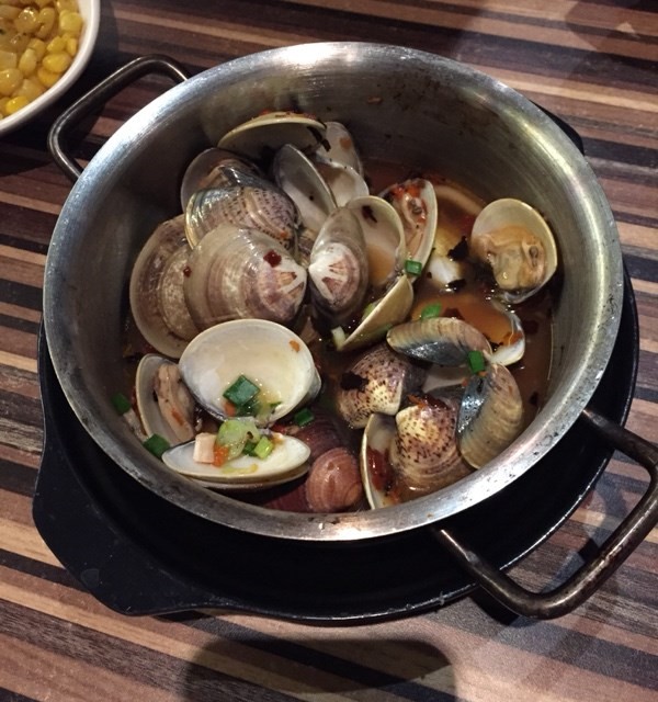 我哋叫咗个机烧加放题,矶烧之前店员会送一个叫做卜卜蚬,呢个卜卜蚬,同出面𠮶啲煮蚬嘅分别系,每只蚬都好大粒,食落又唔会有沙,亦都非常之鲜甜可口,这只蚬都有半只手掌咁大