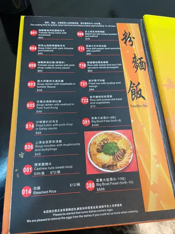 日式海鲜比萨 / 吉列猪扒蛋丼 / 香芒天鸟唐扬卷 / 黑松露芝士焗猪扒意粉 / 浓汤咸菜浸云吞 / 鲍片罗汉上素炒面