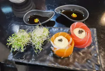 路过见到,行左入去食店子细但坐位多而且位置既空间都大,令到你食时可以享受到食物之余仲享受埋空间👍三文鱼素食几特别,口感好似食硬身啫喱, 牛油果寿司又念唔到几好食,第一次食,真系食到有果香咪😂好新鲜。炒野, 淮山真系食落去似平时快餐店薯条,好正。 罗汉斋伊面又系出色,上台时见到出晒烟仲好香,面低好干脆加上,上面配料 酱汁唔太多食落d面有声,可以慢慢食🤭炒菇菌又系无得顶,全因墙汁控制得好好,令食落去唔会太寡。最后既石锅饭当然唔小得佢个饭蕉而且食材都系放满个锅,好有清足感。