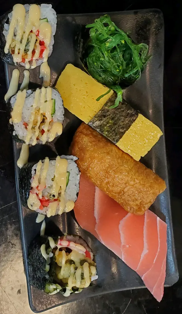 路過見到,行左入去食店子細但坐位多而且位置既空間都大,令到你食時可以享受到食物之餘仲享受埋空間👍三文魚素食幾特別,口感好似食硬身啫喱, 牛油果壽司又念唔到幾好食,第一次食,真係食到有果香咪😂好新鮮。炒野, 淮山真係食落去似平時快餐店薯條,好正。 羅漢齋伊麵又係出色,上台時見到出曬煙仲好香,麵低好乾脆加上,上面配料 醬汁唔太多食落d麵有聲,可以慢慢食🤭炒菇菌又係無得頂,全因牆汁控制得好好,令食落去唔會太寡。最後既石鍋飯當然唔小得佢個飯蕉而且食材都係放滿個鍋,好有清足感。…查看更多