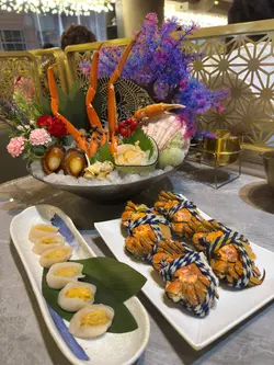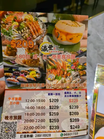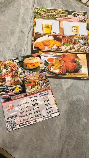 之前跟朋友试过午市,已经成为必回头餐厅首选,原因没有其他,就是! 超!级! 美!味! 刚刚踏入大闸蟹季,尝到了新推出的大闸蟹任食餐🦀 先上4只,每只足秤4两,因为刚步入当造季, 所以暂时未去爆膏的滋味,不过仍不能看轻大闸蟹的美味😋一点都不腥👍晚市放题还有任食海鲜拼盘和三文鱼腩刺身盘🤩🤩 超级抵食和打卡感强🥳晚市海鲜拼盘还有2盒鱼子酱,彻底体验一把富家千金生活🥹🤩 加$148 还能再升级,可以任饮生啤和任食海胆带子, 和朋友来把酒言欢可谓人生一等妙事☺️个人极推任食海鲜拼盘,象拔蚌好咬口 ;鲍鱼软腍不韧还要有淡淡酒味…完全系食到不想停下来❤️🔥 而三文鱼腩刺身盘绝对是锦上添花, 三文鱼油脂分布完美, 食落肥美😋; 虾有手掌咁长🦐连朋友都赞不绝口😆还有海胆带子, 卖相吸引, 海胆夹在带子中间, 海胆一点也不腥还带点甜,连带子一起食更是绝配👍其实食完上面的东西已经霸占肚子超大容量🤣 另外还能从外面自取前菜,包括爽脆的麻辣鱼皮、海哲等, 更有不同口味的雪糕、 饮品、甜品、水果等。除此之外, 可用QR Code 落单单点泰式烧物、刺身寿司、手卷等, 食物款式多到一个肚根本装不下🥲 这个价格绝对是抵到烂🤩 最后跟朋友是抱著大肚子超级大满足地离开🐖怪不得平日光顾都是满座了 😆…查看更多