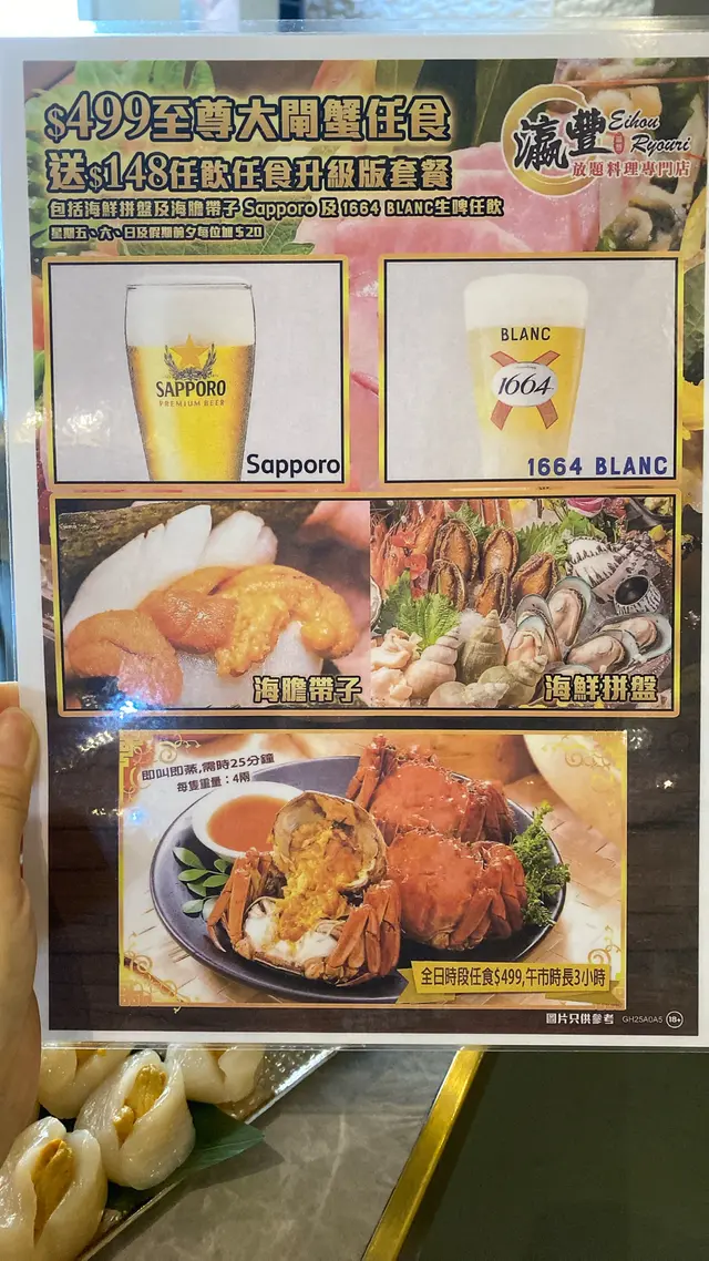 忙到抖唔到氣嘅日子終於過去,老公想瘋狂食放題,我又心思思想食大閘蟹🦀!上網搵吓銅鑼灣有冇兩全其美嘅地方,真係比我搵到寶藏——「瀛豐放題料理專門店」!喺京都廣場3樓,勁方便👏呢度主打「至尊大閘蟹放題」,除咗主角大閘蟹,刺身、壽司、涼拌、小菜多到眼花👀,連甜品都係誠意之作,款款好味到停唔到口!🔅三文魚腩刺身盤🍣厚切新鮮,魚油豐盈,入口嫩滑!仲有醬油吞拿魚、油甘魚、八爪魚、螺片同珍寶赤蝦,全部都鮮味爆燈💥 🔅極品海鮮拼盤鮑魚爽彈鮮甜仲帶啲酒香,而長腳蟹就鮮甜多汁!凍鮮隻隻都好爽口 ,仲翡翠螺鮮甜有咬口🌟 🔅海膽帶子海膽嘅濃郁同帶子嘅厚鮮真係perfect match!啖啖海洋滋味🌊 🔅大閘蟹🦀隻隻都爆膏!蟹膏甘香濃郁,蟹肉好鮮甜,真係秋天最幸福嘅味道😍 🔅 天婦羅炸得酥脆唔油膩,🍤蝦同蟹柳都 keep 到肉汁! 🌿 泰式鳳爪同生菜包酸辣開胃,一樣出色!最後,甜品仲有㚈款啫喱、布甸、雪糕、雪條!真係成餐都大滿足,肚仔同心靈都飽晒🤣!…查看更多