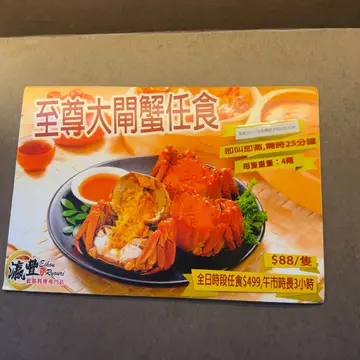 之前跟朋友试过午市,已经成为必回头餐厅首选,原因没有其他,就是! 超!级! 美!味! 刚刚踏入大闸蟹季,尝到了新推出的大闸蟹任食餐🦀 先上4只,每只足秤4两,因为刚步入当造季, 所以暂时未去爆膏的滋味,不过仍不能看轻大闸蟹的美味😋一点都不腥👍晚市放题还有任食海鲜拼盘和三文鱼腩刺身盘🤩🤩 超级抵食和打卡感强🥳晚市海鲜拼盘还有2盒鱼子酱,彻底体验一把富家千金生活🥹🤩 加$148 还能再升级,可以任饮生啤和任食海胆带子, 和朋友来把酒言欢可谓人生一等妙事☺️个人极推任食海鲜拼盘,象拔蚌好咬口 ;鲍鱼软腍不韧还要有淡淡酒味…完全系食到不想停下来❤️🔥 而三文鱼腩刺身盘绝对是锦上添花, 三文鱼油脂分布完美, 食落肥美😋; 虾有手掌咁长🦐连朋友都赞不绝口😆还有海胆带子, 卖相吸引, 海胆夹在带子中间, 海胆一点也不腥还带点甜,连带子一起食更是绝配👍其实食完上面的东西已经霸占肚子超大容量🤣 另外还能从外面自取前菜,包括爽脆的麻辣鱼皮、海哲等, 更有不同口味的雪糕、 饮品、甜品、水果等。除此之外, 可用QR Code 落单单点泰式烧物、刺身寿司、手卷等, 食物款式多到一个肚根本装不下🥲 这个价格绝对是抵到烂🤩 最后跟朋友是抱著大肚子超级大满足地离开🐖怪不得平日光顾都是满座了 😆…查看更多