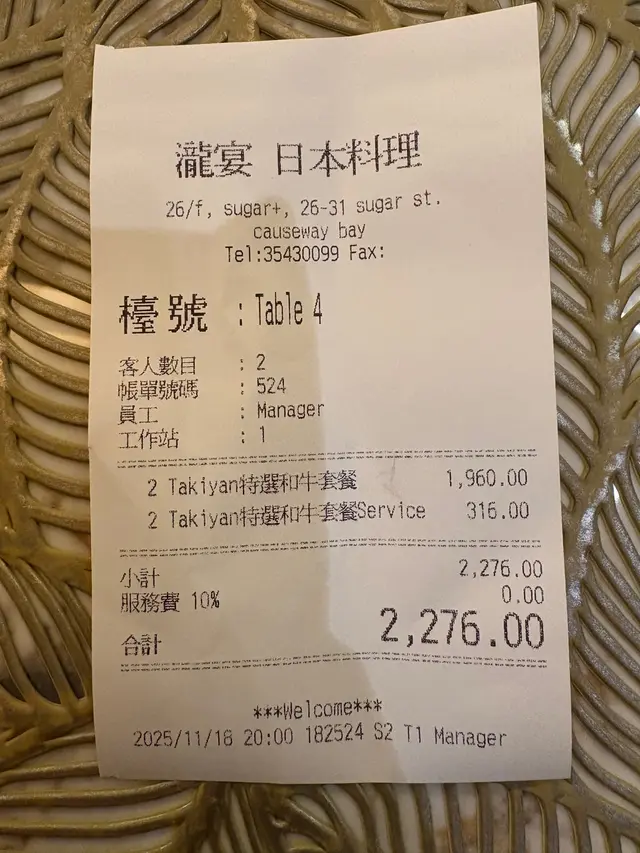 瀧宴日本料理 (Sugar+) (铜锣湾) 网上订位享低至8折优惠并赚Rice Dollars 网址: https://s.openrice.com/QrLS0VyC5W0 地址: 香港銅鑼灣糖街25-31號Sugar+ 26樓 电话: +852 35430099