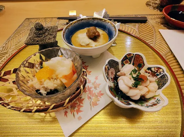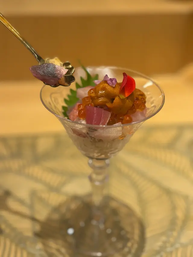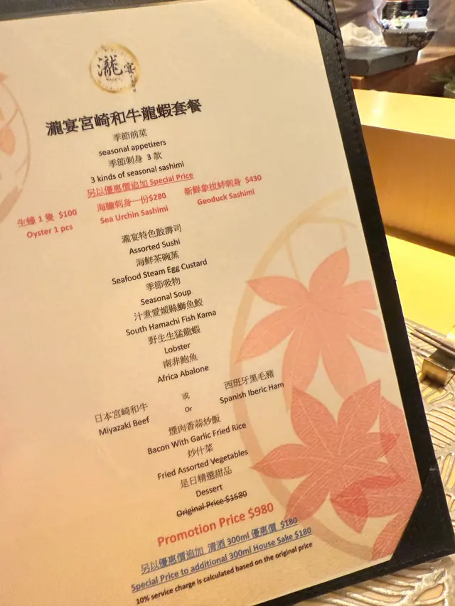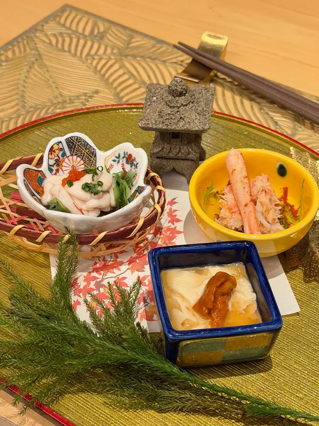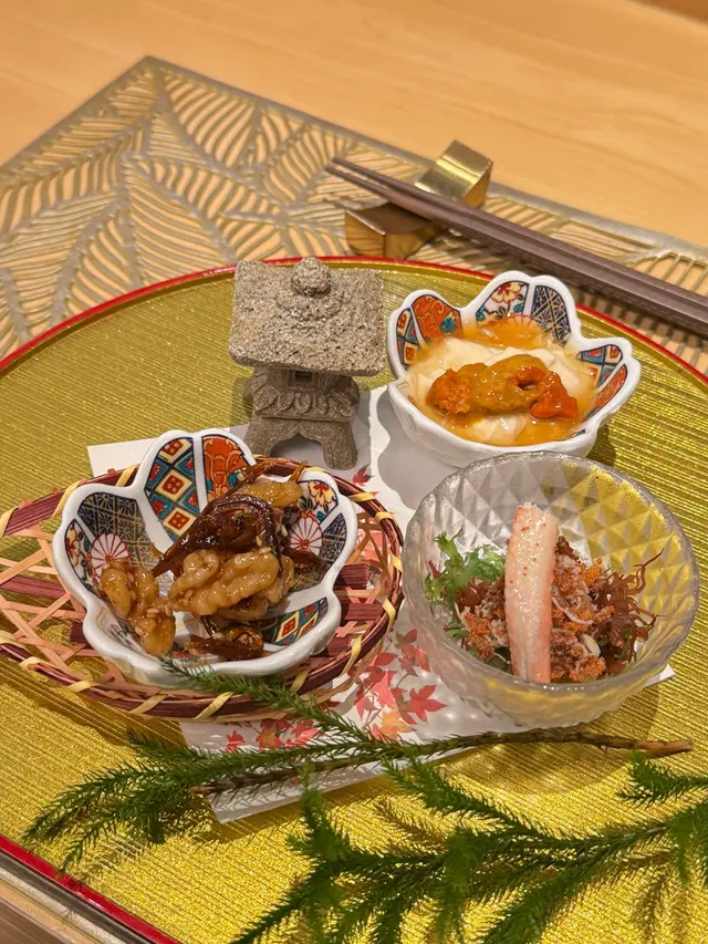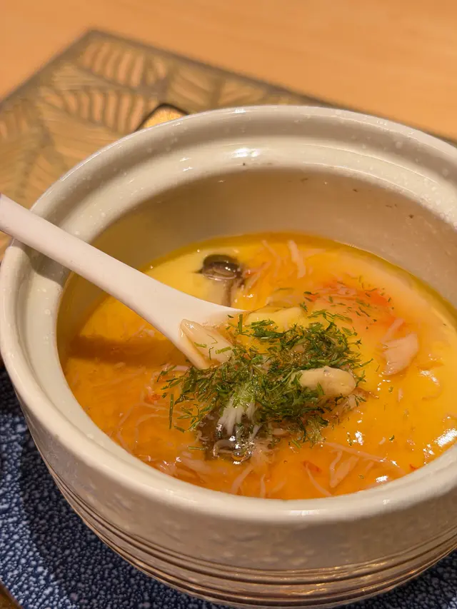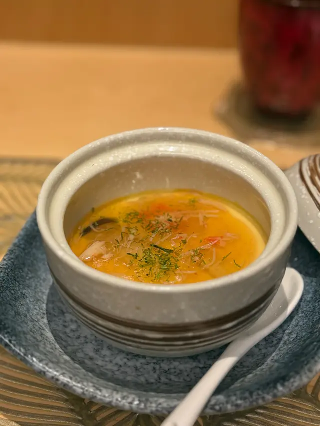 今日同朋友去左一間擁有落地大玻璃,裝潢高雅,環境寬敞又舒適的廚師發板日本料環設有吧枱位置可以近距離觀賞廚師烹調技巧✨ 季節前菜三款開胃前菜,香箱蟹的蟹膏和蟹籽係精華,加上蟹腳好正🤤另外腐皮海膽和合桃小魚都好開胃。 ✨ 季節刺身3款赤蝦、鯛魚和鰹魚,赤蝦很大又肥美,魚味很鮮。✨海膽、三文魚子、三文魚、金目鯛杯裝壽司,精緻的杯好適合打卡。✨茶碗蒸 茶碗蒸口感滑嫩綿密,每一啖都有滿滿既蟹絲,令鮮甜味大大提升!✨蜆肉清湯肉質細嫩,最適合烹煮清湯。✨汁煮愛媛縣鰤魚鮫鰤魚的鮮嫩和醬汁的完美結合,質地細緻,放入口中有即化感覺。✨ 野生生猛龍蝦師傅一路燒一路表演拆龍蝦肉,透過鐵板均勻煎製,盡顯功架!龍蝦肉質緊實有嚼勁,鮮味濃厚。✨ 南非鮑魚肉質爽嫩彈牙,好鐘意師傅既調味,令鮮味昇華。✨ 日本宮崎和牛日本和牛永遠唔會令人失望,我地揀左五成熟。和牛有著霜降般既油花分怖,軟嫩又多汁,牛味濃郁,配搭炸蒜膩感減低,正! ✨ 煙肉香蒜炒飯粉粉分明的炒飯,加入煙肉和香蒜配上太陽蛋,啖啖充滿蛋香。✨ 炒什菜看似平平無奇既煩炒芽菜,口感爽脆,十分香口。✨是日精選甜品綠茶紅豆布甸,綠茶清香中和了紅豆甜度,布甸綿密滑順!…查看更多
