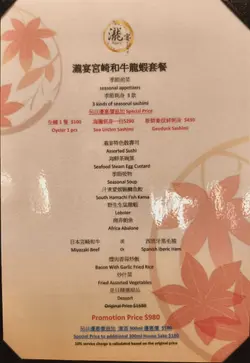 位於銅鑼灣Sugar+ 26樓的「瀧宴日本料理」,餐廳落地玻璃窗設計,可以飽覽維港和維園景觀,號稱最靚夜景的鐵板燒餐廳,而且套餐高質抵食,而家仲做緊推廣,晚市特選和牛套餐做緊大約六五折優惠,八百幾蚊就可以南非鮑魚、刺身、即撈野生猛龍蝦、鵝肝、日本宮崎和牛等等貴價食材,真係相當抵食👍👍🌟特選和牛套餐超值優惠價 $880| 原價 $1380✨自家製醬汁煮南非鮑魚鮑魚軟腍入味,自家製醬汁帶出鮮味,配合清甜的蘿蔔,味道出色✨季節刺身3款三款刺身赤蝦、鰹魚、深海池魚,新鮮又鮮味,特別係赤蝦彈牙美味✨吞拿魚一口酥用最中餅放上赤醋飯和吞拿魚腩蓉,再灑上淡雪鹽,入口口感豐富,吞拿魚蓉滿滿油香,仲有靚靚小蝴蝶,原來係米紙可以食落肚✨海鮮茶碗蒸蒸蛋超級香滑,滿滿海鮮湯的鮮味✨大蜆清湯蜆肉大大隻新鮮厚肉,湯頭非常清甜✨野生生猛龍蝦龍蝦在魚缸即撈即劏,非常生猛和新鮮,師傅將龍蝦燒熟後配上蝦頭膏汁,蝦肉夠晒彈牙味道甘香✨香煎鵝肝伴自家制醬汁鵝肝煎得外脆內軟,配上最佳拍檔黑醋醬汁,配上香脆多士超好食✨日本宮崎和牛和牛肉質高質油脂豐富,厚切五成熟,入口軟腍充滿牛香,簡單配上海鹽和蒜片已經好好食✨煙肉香蒜炒飯|炒什菜必食呢度嘅炒飯,師傅炒得粒粒分明好香口,配上一隻燶邊太陽蛋,人間美味幾飽都可以食到,炒飯再配上什菜,豐盛美味✨是日精選甜品甜品巨峰啫喱,味道清甜清新,食到咁飽食呢一款啫喱就啱晒✨追加櫻花蝦 $ 120想食香口嘢,呢一個就係櫻花蝦就啱晒,香口鬆脆充滿蝦香📣📣另以優惠價追加 📣📣生蠔1隻 $100海膽刺身一份$280新鮮象拔蚌刺身 $430清酒300ml優惠價 $180…查看更多