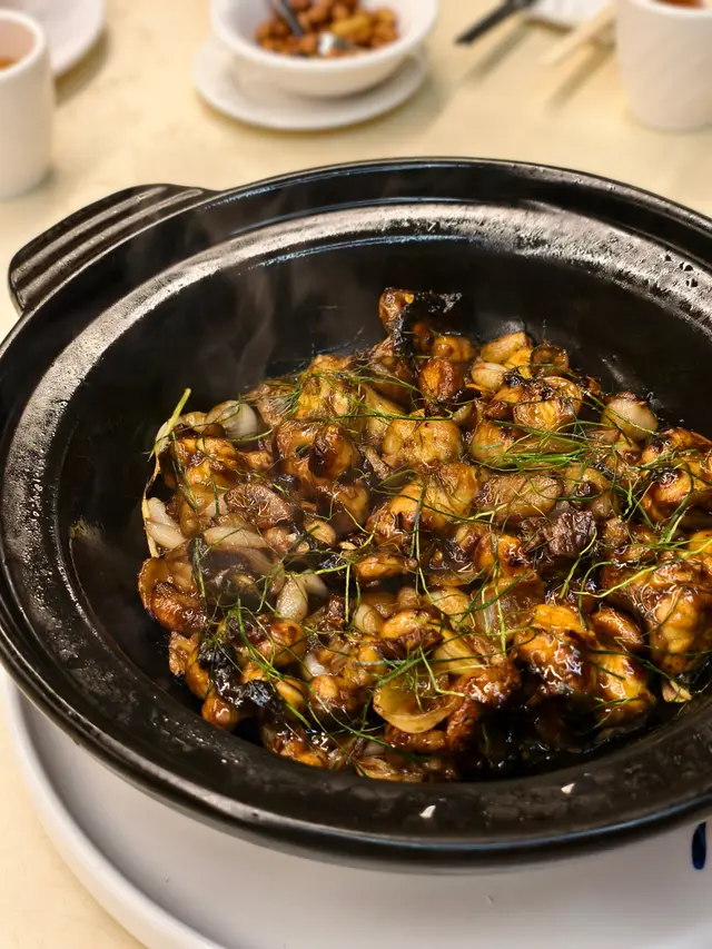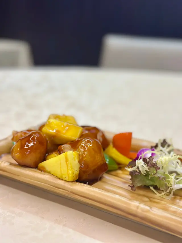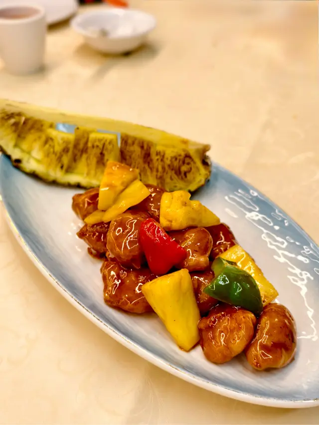 想食中菜,又唔想飲茶,打開OpenRice bookmark咗嘅銅鑼灣中餐廳,就見到呢間「灃味館」,咁就俾個機會佢試吓啦。出發前嗱嗱臨WhatsApp 預約,呢日係星期日嘅午市,雖然只係兩個人嚟,餐廳職員安排咗個廂房俾我哋,仲有埋電視睇㖭。呢度係做私房菜嘅格局,都有幾間私人廂房,食飯傾偈時可以Private啲。兩個人叫咗個午市二人餐,前菜要咗酥炸生蠔,湯就升級轉左杏汁菜膽燉花膠湯,主菜要咗新鮮菠蘿拔絲咕嚕肉和上湯焗海虎蝦拌鍋巴,主食到升級咗轉做銓哥炒飯。酥炸生蠔一人一隻,炸皮做得好薄好脆,生蠔都幾飽滿,蠔肉仲係好嫩仲有蠔汁,唯一係個帶子位靭咗啲(兩隻都係)。杏汁菜膽燉花膠湯就一般般啦,塊花膠好薄好細塊,不過我哋冇預早book枱,都不能要求太多。個湯都好滑嘅,有雞腳燉湯個湯提鮮不少,杏汁就幾好唔會食到有顆粒感。呢度嘅王牌菜式之一係新鮮菠蘿拔絲咕嚕肉,又係個炸皮做得好薄好脆,裹住個醬做到拉絲感,咕嚕肉係梅頭肉夠滑帶嚼勁。呢個咕嚕肉又真係幾好食嘅,一舊食完又一舊,好食到食唔停。上湯焗海虎蝦拌鍋巴,個醬用咗上湯同櫻花蝦,好香口,忍唔住口掛住用好鍋巴沾個醬嚟食。海虎蝦控制火頭啱啱好,蝦肉仲係好鮮嫩。銓哥炒飯有櫻花蝦、帶子、蝦肉、芥蘭頭等配料。由於兩款主食太好食啦,令銓哥炒飯有啲失色。要讚嘅係,個炒飯炒得唔油,夠乾身,碟底唔會有一堆油。食完仲有兩碗糖水送添。今次午飯小事試牛刀覺得大廚銓哥喺火候技巧同食材味道配搭上面都唔錯,擺盤都吸引,已經心思思計劃下次約埋啲朋友一齊嚟試吓個主菜單的食物先。…查看更多