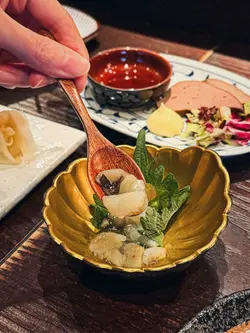 走入居酒屋,好似瞬间穿越去日本小巷。木质装潢及暖黄灯光,带出一种静谧而亲切嘅感觉,系一种慢活氛围,令你自然又放松😌.🇯🇵Weekend Brunch ($588/ 2人).【前菜】🥢鳗鱼玉子烧蛋卷柔软,甜味轻盈,鳗鱼油香渗入其中,入口有种层次感😌🥢烟猪肝配胡麻酱汁烟熏香气先行,胡麻酱带出坚果甜香,口感细滑,完全冇腥味😌🥢芥末八爪鱼爽脆又弹牙,芥末刺激感令味蕾瞬间醒神😌🥢萤光鱿鱼渍咸香微酸,鱿鱼柔韧,系典型居酒屋小食嘅味道😌.【沙律】🥢野菜田园沙律蔬菜及牛油果新鲜,口感清脆,系整个套餐嘅净化剂,令味觉重新归零😌【卷物】🥢青瓜卷饭粒黏度适中,青瓜清爽,简单却解腻😌.🥢鉄火卷吞拿鱼赤身鲜味突出,酸度平衡,经典之选😌【串烧】🥢明太子紫苏叶豚肉卷紫苏清香及豚肉油脂互相中和,明太子咸香令味道更立体😌🥢自家制月见日本免治鸡肉串鸡肉扎实,炭火香气明显,配生蛋黄入口更滑润,系全餐亮点之一😌【天妇罗】🥢海老炸浆轻薄,虾肉弹牙😌.🥢舞茸菇菇香浓郁,炸后仍保留水分😌.🥢沙𩺬鱼外脆内嫩,鱼肉细腻😌.🥢番薯及南瓜甜味突出,炸浆轻盈,口感松软😌【炉端烧】🥢鲜鱼一夜干鱼肉实净,咸香浓缩且带焦香😌.鱿鱼一夜干🥢烟韧有嚼劲,唧少少柠檬汁令鲜味突出,配酒一流😌【炸物】🥢吉列广岛蚝蚝肉厚实,炸浆酥脆,入口干身唔油腻😌🥢土佐豆腐外脆内嫩,配搭木鱼碎及葱花等,另有一番风味😌【主食】木鱼汤乌冬汤底清甜带木鱼香,乌冬滑溜有嚼劲,为整个套餐划上温暖句号😌整个Weekend Brunch好似一场味觉旅程,由清爽前菜到炭火串烧,再到温暖乌冬,层次分明。另餐厅唔止系食物,仲系一种周末慢活体验,令你暂时忘记城市嘅急速节奏,享受鲜味与静谧😌…查看更多