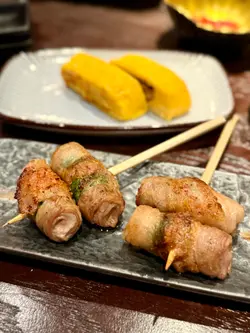 一串兩件的豚肉卷燒得好香口,帶點肥肉的豚肉咬落去會爆油脂汁,紫蘇葉又能中和油膩感。