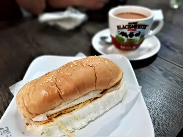 咸牛肉蛋包、熱奶茶