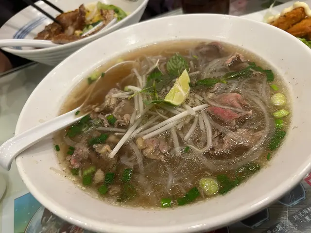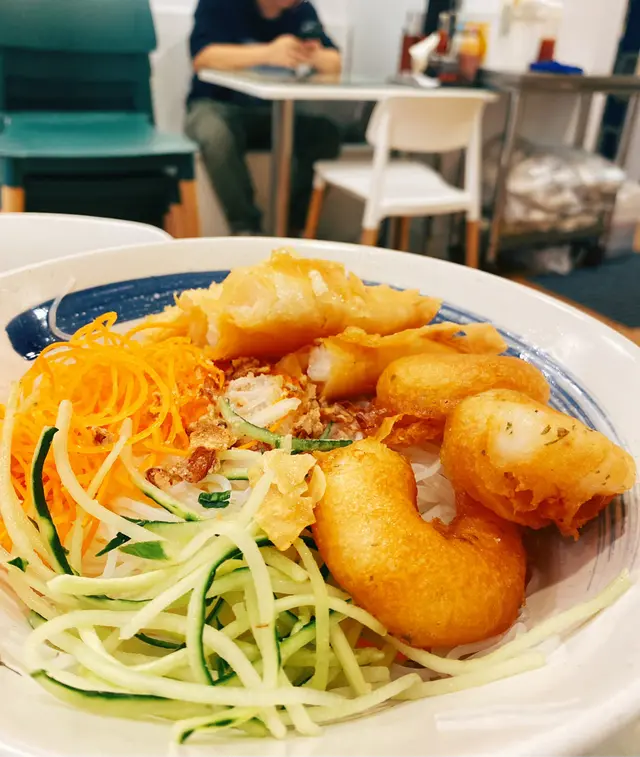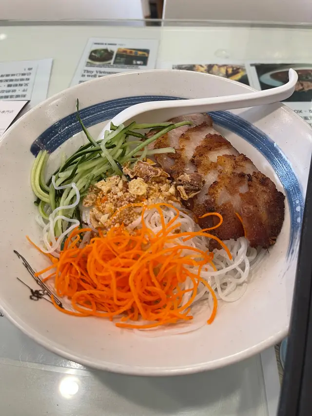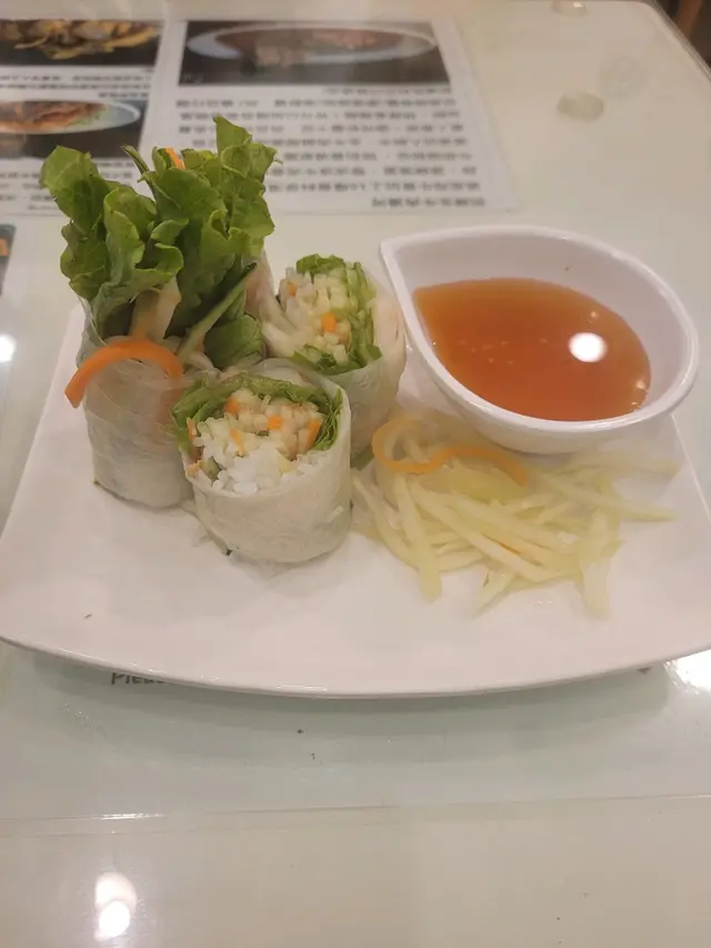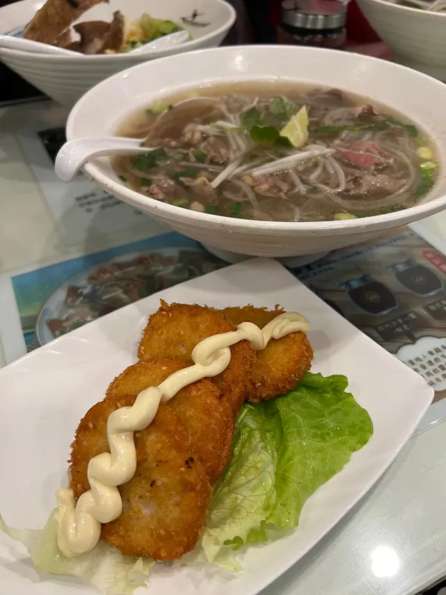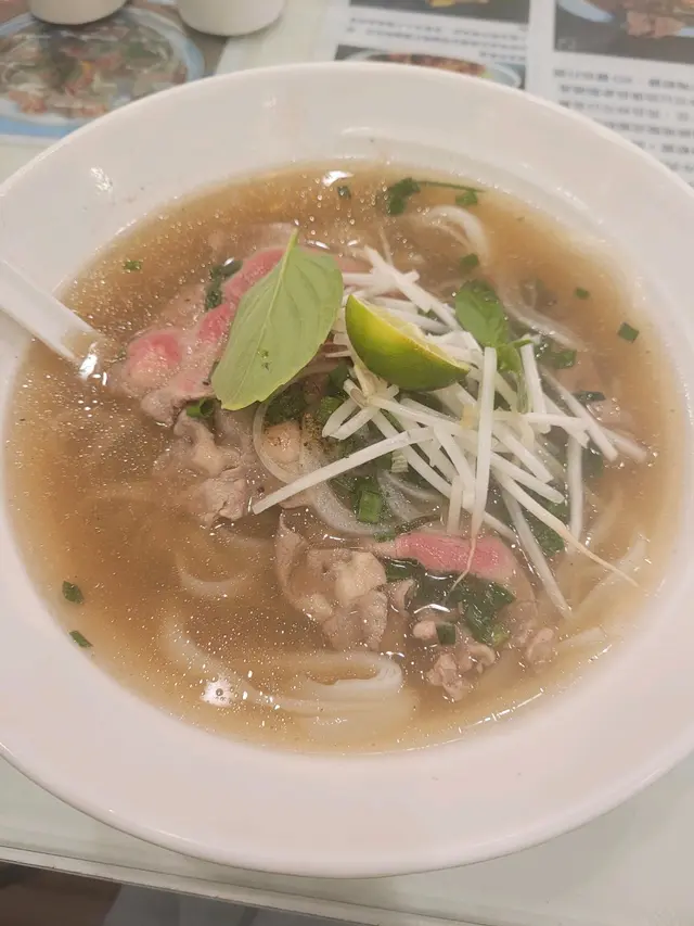 真係好鍾意呢間越南小店!有次咁岩經過見到下午茶$40連嘢飲就入去試下,最後埋單凍飲唔加錢,仲要冇加一!!之後因為要係附近上堂就成日幫襯,真係好鍾意佢個生牛肉湯河同撈檬仲有炸蝦餅!個湯好鮮好濃,唔似係味精湯。撈檬個汁小小辣好開胃。個蝦餅好足料又彈牙,$28四件真係好抵。每次所有嘢都食曬連湯都飲曬真係好正!外賣有折,下午茶都有優惠完全唔知佢哋點賺錢。今次去仲見到有隻貓貓,不過因為驚人所以用塊黑布遮住,希望以後佢可以慢慢習慣人可以摸下啦~不過就算係下午茶時段都唔好多客,希望呢間小店生意興隆,再多啲人幫襯。