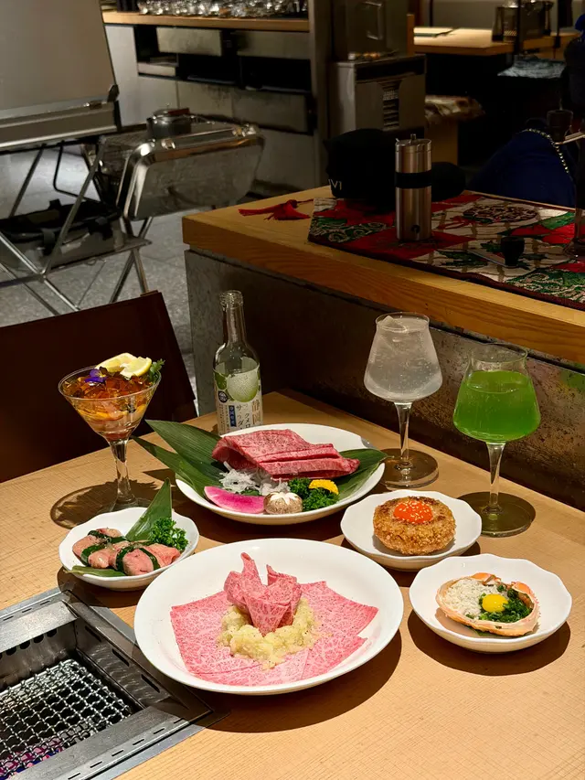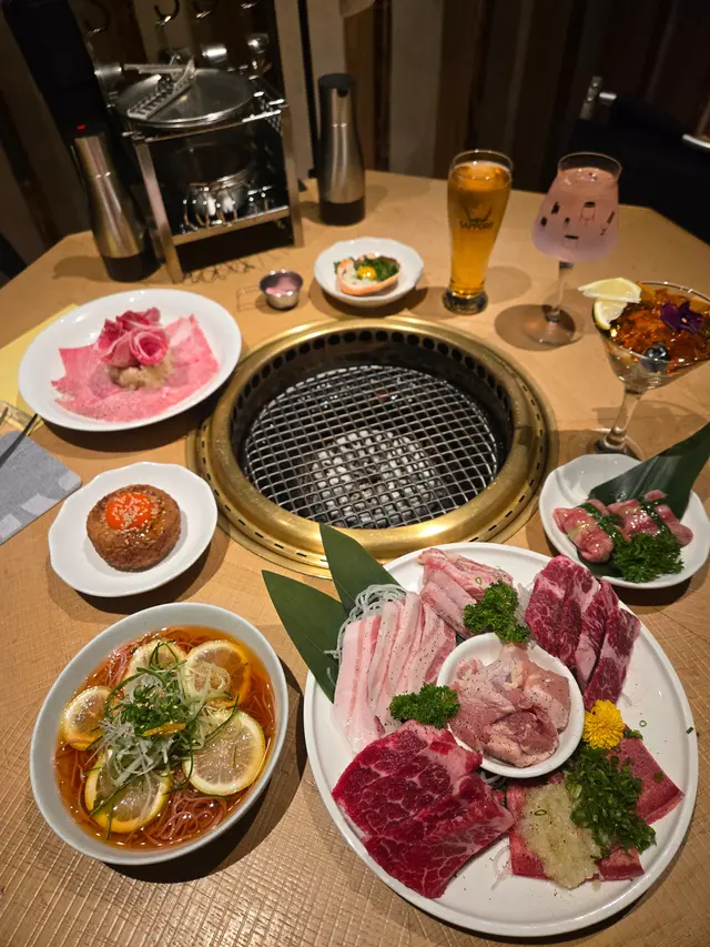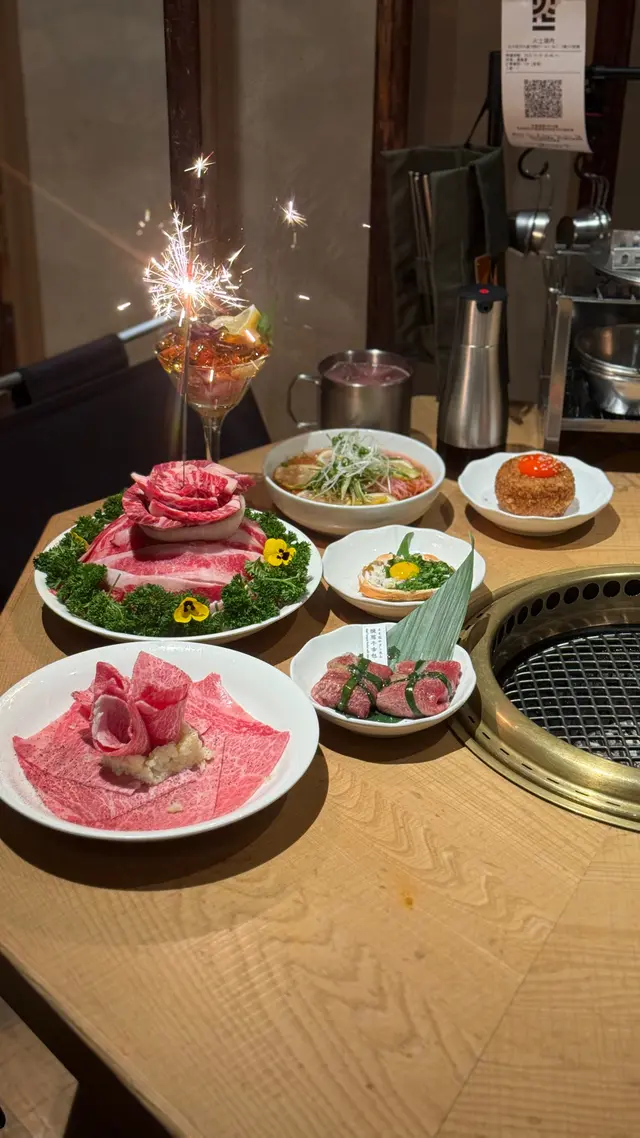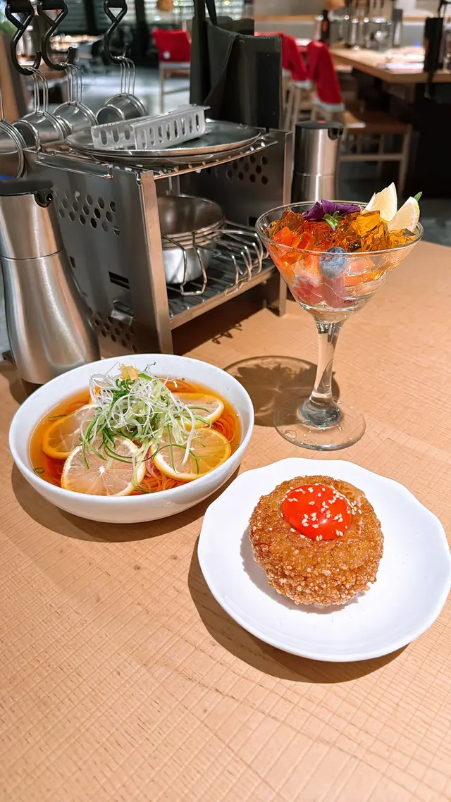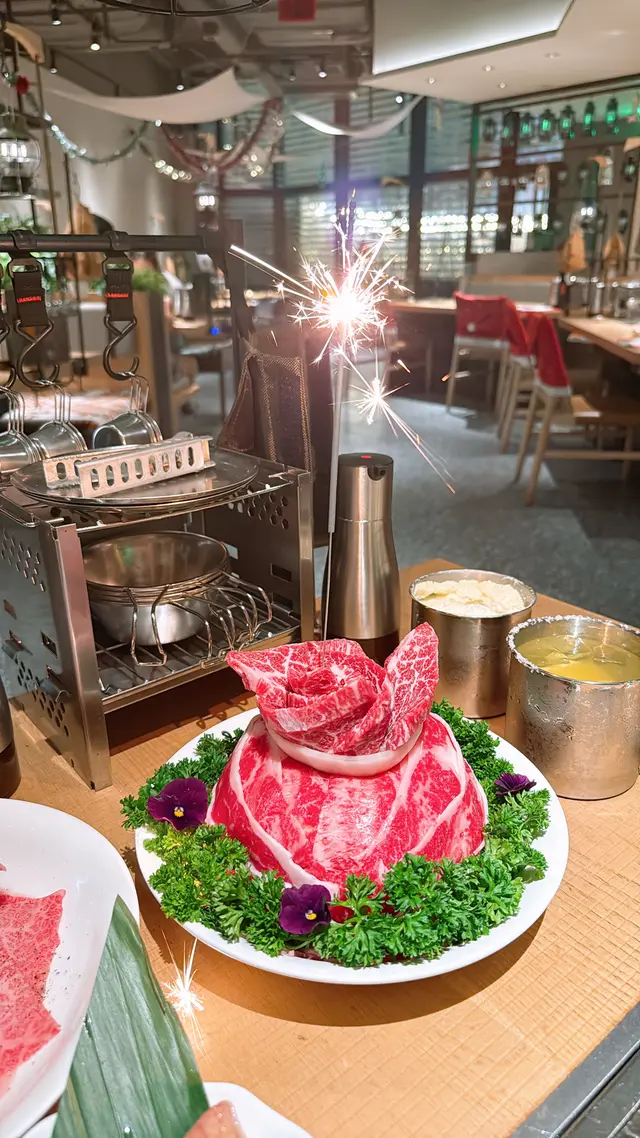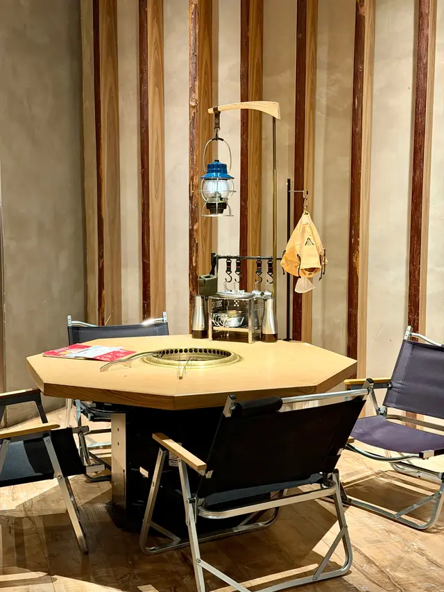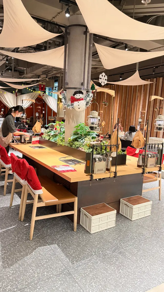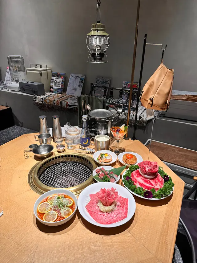 今次再訪以露營概念為主題的餐廳〔火土燒肉〕,知道餐廳已推出聖誕節套餐,馬上去提早感受節日氣氛。店內店外都已經放了不少聖誕裝飾,餐廳內部以木質用料為主,佔地甚廣環境闊落,有數張特色的露營檯及摺疊櫈座位,檯上更放有不多少露營餐具碗碟紙巾及露營燈,裝潢擺設都落足心思,室內每個角落都擺滿了專業露營用品及搭配綠色植物作佈置,更有舒適的梳化座位及數個帳篷露營用的大帳篷,坐在大帳篷下圍爐涼著冷氣吃燒肉嘆啤酒,實在是很好的享受。而室外設有戶外露天酒吧,酒吧更已經換上聖誕樹及冬日白色擺設佈置場地及有爆谷換領券,還有定時飄雪的浪漫效果,晚上非常有節氣氛,身處鬧市亦能與三五知己,圍著爐火感受露營的樂趣,實在是與別不同的燒肉體驗。而店員服務亦保持水準,細心有禮會主動提議換烤網及收碟,晚餐時段入座率都很高的,建議想吃要先打電話訂位。【燒肉煙花蛋糕】 之前已經在網上看到這個燒肉煙花蛋糕,已經覺得很吸睛,店員會點小煙火,儀式感滿滿,小煙火更是蛋糕上的點睛之筆,燒肉蛋糕由牛小排及牛三筋堆砌成,色澤鮮紅的牛小排,入口肉質軟嫩牛味濃,而牛三筋油脂多,有點像肥牛,輕輕燒幾秒,就看到油脂滲出,燒熟了就很香口,各有各喜歡,慶祝特別節日或生日必備,推薦。【A5和王牛三角腹肉】放在網燒爐燒時真的需要點技巧,店員看到我們雞手鴨腳馬上來幫忙燒,店員將肉燒熟後,將蒜鋪在燒肉上卷著,蒜沒有搶走牛肉的味道,入口柔軟蒜味很香,推薦。【塩蔥牛舌包】 牛舌包著滿滿的香蔥,燒熟後入口有滿滿的蔥及牛舌味道,絕配的配搭,吃時亦能保留香蔥脆嫩的口感。【熱帶風情海鮮雞尾酒杯】顏色鮮艷很吸睛,雞尾酒杯內有啫喱、藍莓、草莓、帶子刺身粒、吞拿魚刺身粒及北寄貝刺身粒,加上有黑醋汁,很醒胃的前菜。【味噌蟹肉甲羅燒】蟹肉和蟹膏等食材都放在蟹殼內,加入鵪鶉蛋及蔥花撈勻,放在爐火上慢慢燒來吃,燒香的蟹膏味道濃郁, 鹹香惹味,食材新鮮,推薦。【月見夢王蛋醬燒飯糰】 用了月見醬汁燒至飯糰表面微焦,飯表層有香口飯焦的口感,加入夢王生蛋流出的蛋汁,入口外脆有蛋香,拌燒肉吃,非常特別又有特色。【柚子梅素冷麵】 加入柚子製成冷麵湯底,配上清涼的梅素冷麵,冷麵麵質很好,冰涼口感與清爽滋味很解膩。【芒果椰香梳打】杯上有椰子製成的泡泡,加上芒果口味的梳打,氣泡感十足,輕盈解膩。【銀嶺月山佐佐良月】入口有很清香清酒味道,口感順滑很易入口,店員會用日式冰酒壺保冷清酒,相當貼心,喜歡飲清酒的朋友就不要錯過了。…查看更多