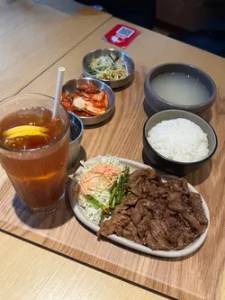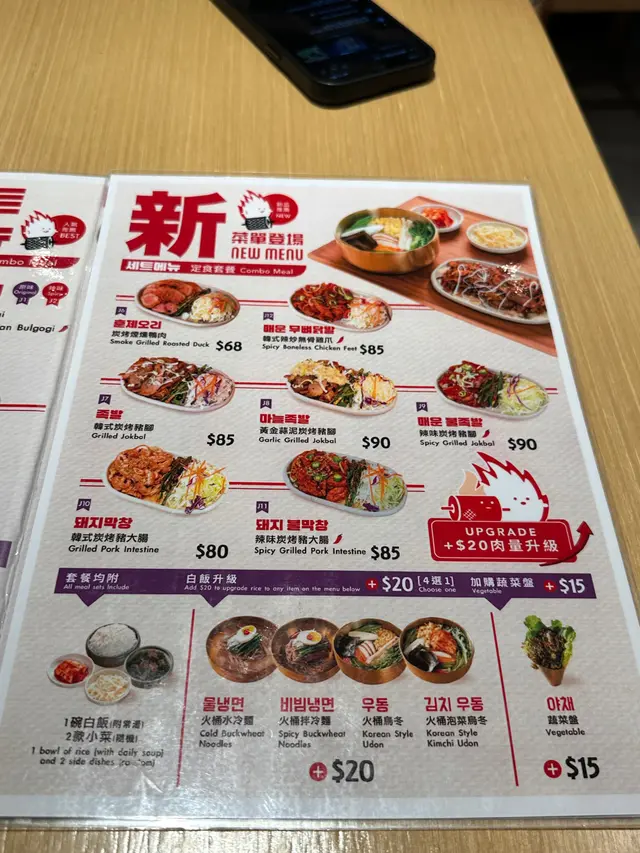 韓國街新開店舖🇰🇷天氣唔好都仲好多人幫襯$68食到韓國燒肉套餐,仲有其他鍋物前菜有泡菜、大豆芽、辣韭菜、沙律椰菜,相當豐富▶️ 炭燒煙燻鴨肉定食套餐Smoked grilled roasted duck set ($68)炭燒煙燻鴨肉份量勁多🤯每片帶少少肥膏,入口唔韌🦆雖然未至於好香煙燻味,但點埋旁邊醬油已經足夠轉火桶烏冬(+$20)幾有誠意,上面有天婦羅碎、冬菇、紅蘿蔔絲烏冬粗身,算煙韌彈牙🍜唔想食白飯值得轉▶️ 大邱辣味炭烤豬肉 Spicy YeonTan Bulgogi x2 ($68)兩個朋友都揀呢個炭烤豬肉薄切,炒到焦香肉多少肥膏,辣辣哋好惹味🐷轉水冷麵 (+$20)夏天怕熱可以試試-應該係暫時韓國街食過叫又好食又抵食嘅韓國菜❤️🔥炒豬肉整得好食😋見隔籬枱叫嘅LA beef都似模似樣環境OK,坐得舒服服務員態度好,上菜速度快,擺盤整齊性價比高,加一後$100/人*全自費非試食…查看更多