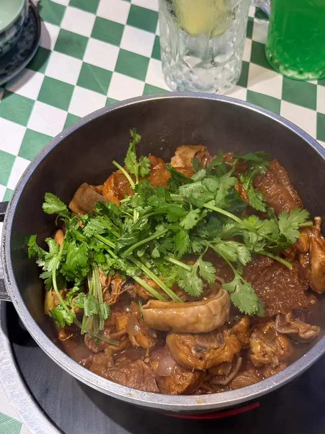 先食雞煲,之後換煲打邊爐。手切牛肉、配料任食,啤酒cocktails 同飲品任飲。地方唔大個場好爆,裝修幾好feel,老闆員工幾nice幾玩得。雞煲好濃郁(個人覺得偏咸),有豬皮豬雜,多到食唔哂。打邊爐有6個湯底,揀咗胡椒豬肚湯底,裡面居然有牛𦟌牛腩,仲好淋好入味。手切牛肉、振興牛丸同其他配菜都好得。最後送埋一大碗甜品仙草芋圓,幾圓滿。啊!鹽酥雞同椒鹽燒賣好好食!想encore! 不過真係要早啲book位。Read More