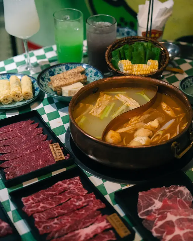最近同朋友去咗一間香港懷舊風火鍋店——火水爐冰室火鍋,一入去恍如置身於80年代嘅香港,細節做到足!📛 今次叫咗佢哋嘅任飲任食「CEO套餐」🍗 招牌麻辣雞煲先嚟過雞煲,除咗雞件外,仲有豬皮、豬腸、豬肚,超惹味,好好食😋有六款湯底可以選擇,我哋揀咗沙嗲湯+胡椒豬肚湯🟤 沙嗲湯濃香惹味,入面仲有牛肋條同牛腱🤩⚪ 胡椒豬肚湯超暖胃,胡椒味唔嗆但夠香,超足料👍🏻🥩 重點!手切肉盤(真心高質)有多款手切牛選擇(穀飼牛板腱/極品封門柳/極上牛小排/安格斯三角肩肉/西班牙黑毛豬)牛味濃郁,肉質嫩滑,輕涮幾秒就食得😋🍢 小食三寶(超香口)椒鹽燒賣|鹽酥雞|脆皮午餐肉 → 每樣都好邪惡,但每樣都會食晒😆🍡 火鍋配料區仲有其他50+款火鍋配料,餃子、響鈴同各色丸類,真係食到好飽😍🍹 飲品任飲|酒精+無酒精都有多款Cocktail無限添飲,推介伏特加青檸梳打✨🍧 甜品仙草芋圓最後要食埋個甜品先走,冰涼解膩,清熱器,仙草滑+芋圓煙韌Read More