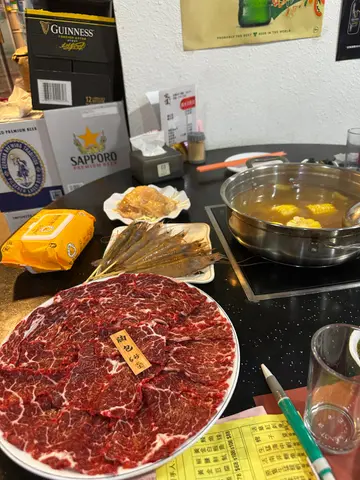 西洋菜陈肾猪肺老鸡炖汤👍汤头甘香美味👍猪肺食极都重有😋每人连汤连汤渣饮咗成3碗才开始打边炉手切牛颈脊油脂分布均匀!提示渌6秒即起!入口即溶👍有牛味顶级黑豚肉黑豚肉好新鲜