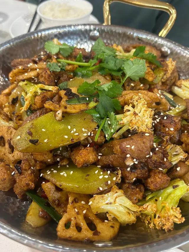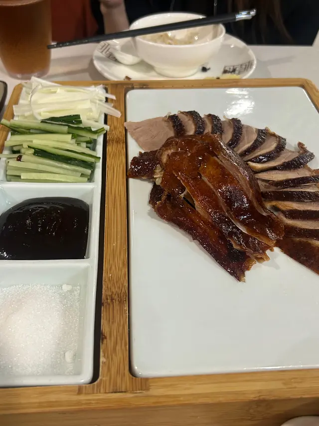 聽朋友說呢間川菜館嘅烤鴨巨絕,身為食肉獸嘅我點可以錯過!即刻沖過來打卡,果然冇令我失望~🦆北京烤鴨(半隻)呢份烤鴨真係食肉獸福音!肉量俾得超足,每一舊都厚實入味。鴨皮烤到酥脆酥脆嘅,咬落去仲帶住焦香,單食或者卷餅都好好味。搭配嘅面皮、蔥絲、青瓜條同甜麵醬,一卷就係一口滿足,半隻落肚幸福感拉滿💥🥟紅油抄手(8粒)抄手個頭飽滿,一口咬開全係肉,肉餡鮮嫩多汁。紅油嘅辣度微辣適中,唔會好嗆,芝麻同紅油嘅香氣裹滿每一個抄手,食起嚟啖啖肉,太過癮了!🥬手撕包菜爽脆嘅包菜搭配乾辣椒爆炒,鑊氣十足,鹹香入味,好解膩嘅一道菜。仲有凍咖啡同凍檸茶,解辣又解膩,搭配川菜絕配~呢間店真係被朋友介紹對了,烤鴨性價比超高,食肉獸一定要沖!下次仲要來試試其他川菜~查看更多