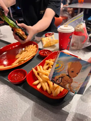 那天来到这家迪士尼餐厅。20周年纪念套餐中的Hulk双层牛肉汉堡都几不错,份量好大份,如果再多些酱汁味道会更佳。个套餐还有20周年饼干,造型都几靓。Spider man 虾堡也很美味,食到里面有大只虾,都几弹牙,整体口感几不错。我们还点了乳酸特饮,搭配一个发光玩具,打卡影相都好好玩。整体而言,这次用餐经验令人愉快,食物的份量和口味都能让人满足。服务人员也很友好。这家餐厅适合小朋友家庭聚餐,也非常适合与朋友一起享受。