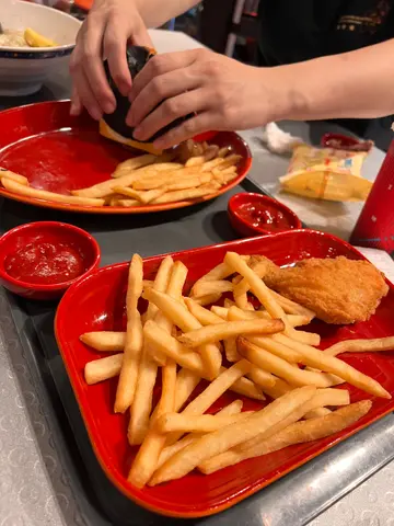 (收据在最后)真系超级耐冇食过火箭餐厅。有惊喜有惊喜以前食双层牛肉汉堡好怕它的红色红菜头包皮十分之硬很难吞咽,今次我们叫了两个餐一个是单人炸鸡餐,令一个是虾宝餐。炸鸡餐,炸鸡揸到金黄酥脆鸡肉嫩滑(完全好似坊间KxC . Mx Dxxxx) 一样完全没有鞋口感觉。另一个是虾宝餐,黑色包皮系墨汁整成,完全没有难吞咽感觉很柔软,很喜欢这个感觉虾肉弹牙外面脆口. 真系好快就食晒啦。薯条当然不在话下当然是我们喜欢的质感及粗度很酥脆好新鲜。