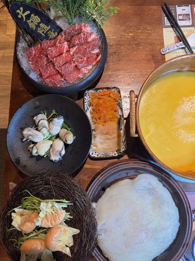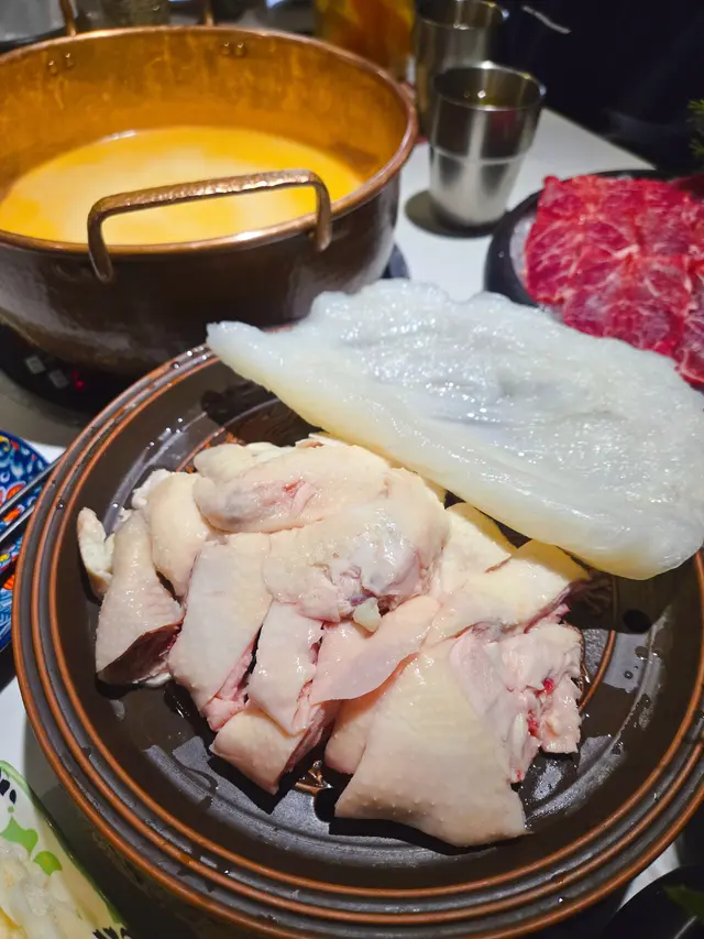 呢排真係好鐘意打邊爐,一出街食飯就要搵邊到有啲高質邊邊打,我哋今次又去咗位於銅鑼灣上樓嘅呢間邊邊 ,見佢Oᴘᴇɴʀɪᴄᴇ評分都幾高,所以就試吓佢招牌花膠雞湯鍋(半隻) $328選用大量鬍鬚雞熬製而成再配合厚身花膠,香濃雞味之餘更可補充骨膠原,簡直係美顏首選,花膠好大塊,店員會幫手剪細啲,再放入個湯度,啲雞係半熟嘅,食幾多落幾多,淥5分鐘就食得,肉質嫩滑,湯底再額外多咗一浸雞嘅香味蘋果木煙燻手切牛頸脊 $438份量都唔算少,見到啲雪花紋都分布平均,食落肉質鬆軟,有浸肉嘅甜味蟹黄豚肉餃 $78呢款手工餃係餐廳推介嚟,每粒都好飽滿,食落係好濃嘅蟹黃味再搭上豚肉嘅香味,估唔到都幾Mᴀᴛᴄʜ手打蟹籽鮮蝦丸 $78Pʀᴇsᴇɴᴛᴀᴛɪᴏɴ好正,用咗個好似旋轉木馬咁嘅玩具上枱,呢粒所謂嘅蝦丸,根本就係成隻蝦嚟🤣肉質爽口彈牙,正😍黑松露厚切即炸午餐肉 $88呢個大推!厚切嘅午餐肉已經夠邪惡,仲要加埋濃到爆嘅黑松露,炸到脆卜卜咁上枱,嗰種香味真係好想一嘢就食哂佢🤤黃金雙拼 $98(鹹蛋黃炒響鈴/鹹蛋黃炒炸魚皮)呢個又係大大大推!食落個響鈴似自家製,非常酥脆,再加埋鹹蛋黃嘅香味,真係好誘人,再快速咁樣浸落個湯底度上返嚟,脆脆地,又不失香味,而個炸魚皮一樣都係咁出色👍🏻足料竹蔗茅根 $78嗌一渣都夠五六個人分,而且味道真係好清甜,夠晒足料!…查看更多