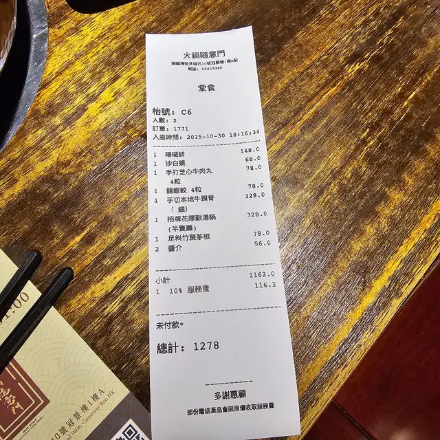 呢排真系好钟意打边炉,一出街食饭就要揾边到有啲高质边边打,我哋今次又去咗位于铜锣湾上楼嘅呢间边边 ,见佢Oᴘᴇɴʀɪᴄᴇ评分都几高,所以就试吓佢招牌花胶鸡汤锅(半只) $328选用大量胡须鸡熬制而成再配合厚身花胶,香浓鸡味之余更可补充骨胶原,简直系美颜首选,花胶好大块,店员会帮手剪细啲,再放入个汤度,啲鸡系半熟嘅,食几多落几多,渌5分钟就食得,肉质嫩滑,汤底再额外多咗一浸鸡嘅香味苹果木烟熏手切牛颈脊 $438份量都唔算少,见到啲雪花纹都分布平均,食落肉质松软,有浸肉嘅甜味蟹黄豚肉饺 $78呢款手工饺系餐厅推介嚟,每粒都好饱满,食落系好浓嘅蟹黄味再搭上豚肉嘅香味,估唔到都几Mᴀᴛᴄʜ手打蟹籽鲜虾丸 $78Pʀᴇsᴇɴᴛᴀᴛɪᴏɴ好正,用咗个好似旋转木马咁嘅玩具上枱,呢粒所谓嘅虾丸,根本就系成只虾嚟🤣肉质爽口弹牙,正😍黑松露厚切即炸午餐肉 $88呢个大推!厚切嘅午餐肉已经够邪恶,仲要加埋浓到爆嘅黑松露,炸到脆卜卜咁上枱,𠮶种香味真系好想一嘢就食哂佢🤤黄金双拼 $98(咸蛋黄炒响铃/咸蛋黄炒炸鱼皮)呢个又系大大大推!食落个响铃似自家制,非常酥脆,再加埋咸蛋黄嘅香味,真系好诱人,再快速咁样浸落个汤底度上返嚟,脆脆地,又不失香味,而个炸鱼皮一样都系咁出色👍🏻足料竹蔗茅根 $78嗌一渣都够五六个人分,而且味道真系好清甜,够晒足料!…查看更多